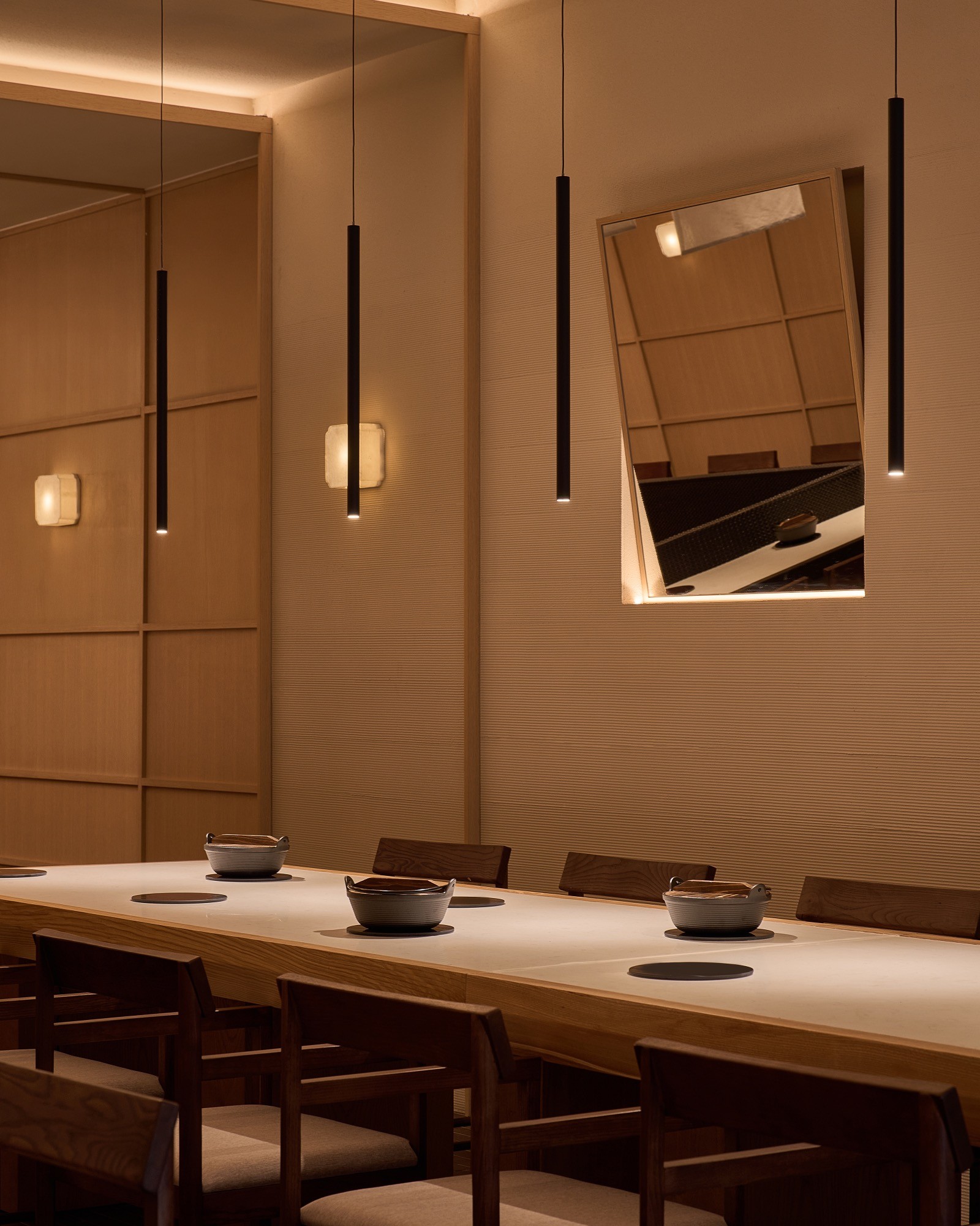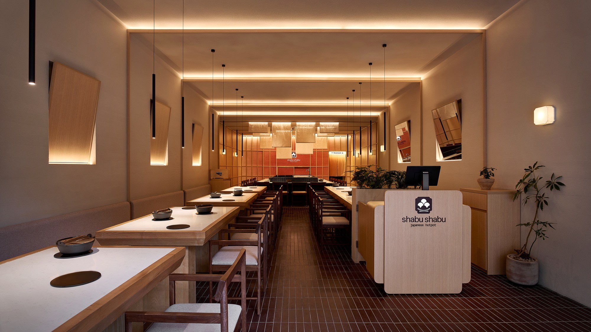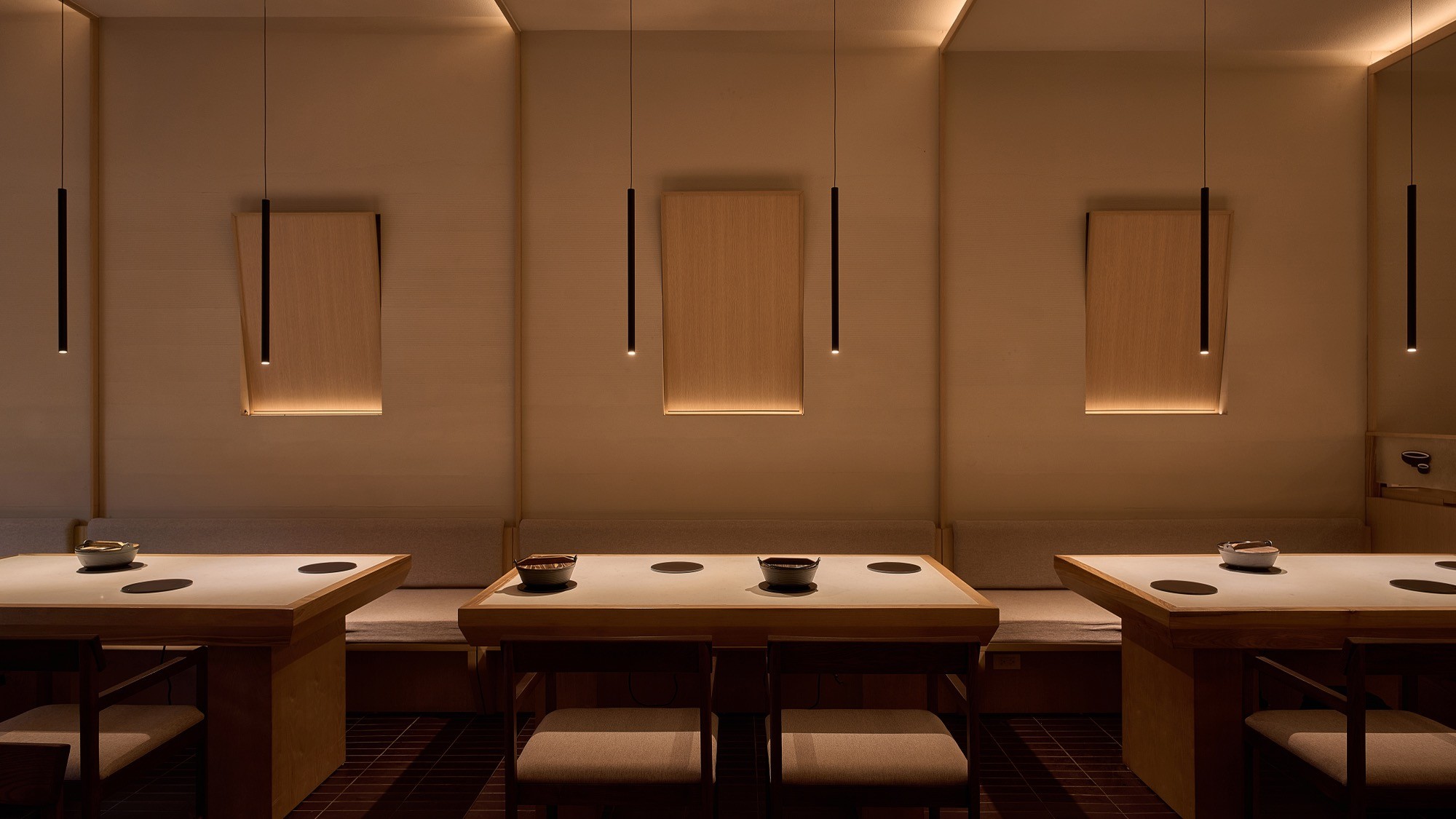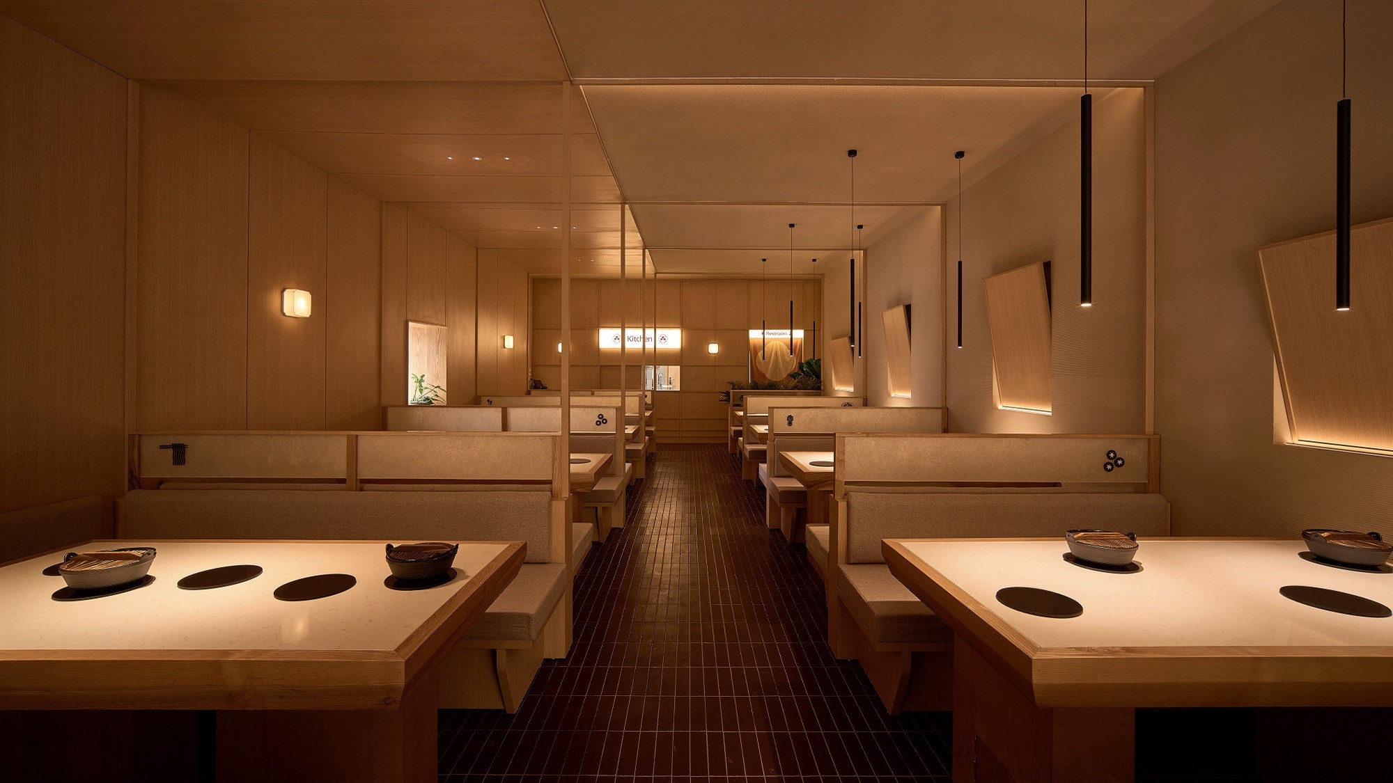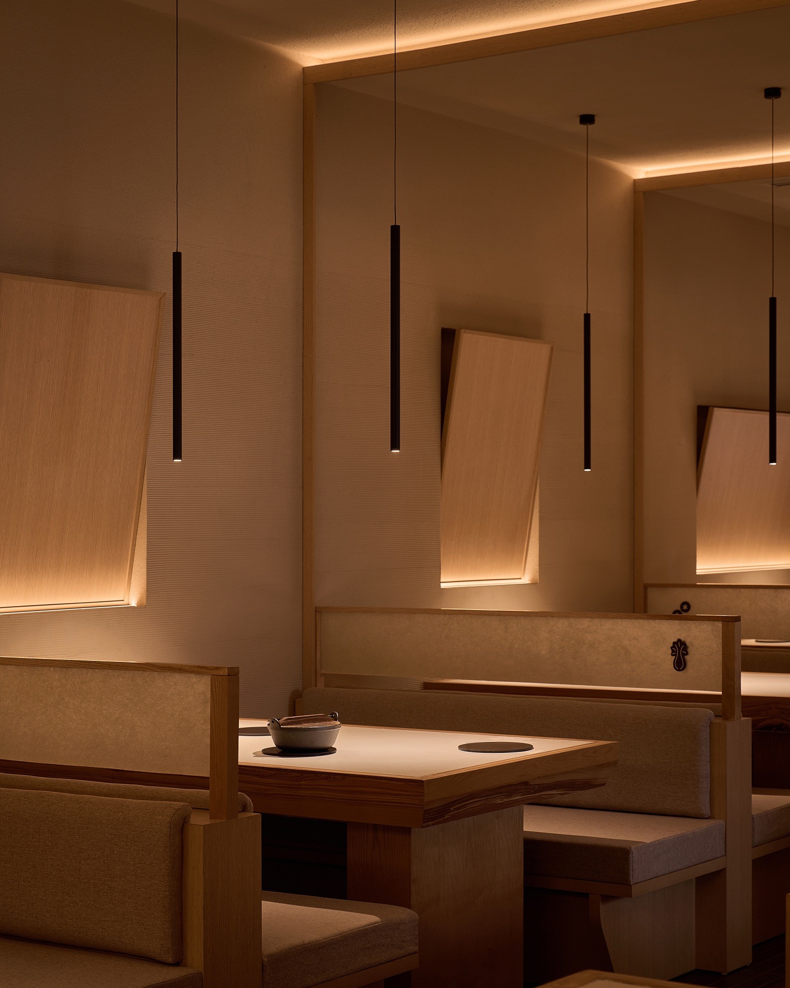 Sự đan xen của lớp nan, ánh sáng và bề mặt khơi gợi hình ảnh chuyển động nhẹ nhàng, lan toả và liên tục của làn hơi bốc lên từ nồi lẩu. Các yếu tố của kiến trúc Nhật truyền thống như nan gỗ và hình tròn được chắt lọc và tái hiện trong một ngôn ngữ đương đại, tạo nên một cấu trúc không gian vừa rõ ràng vừa có độ mềm cần thiết.