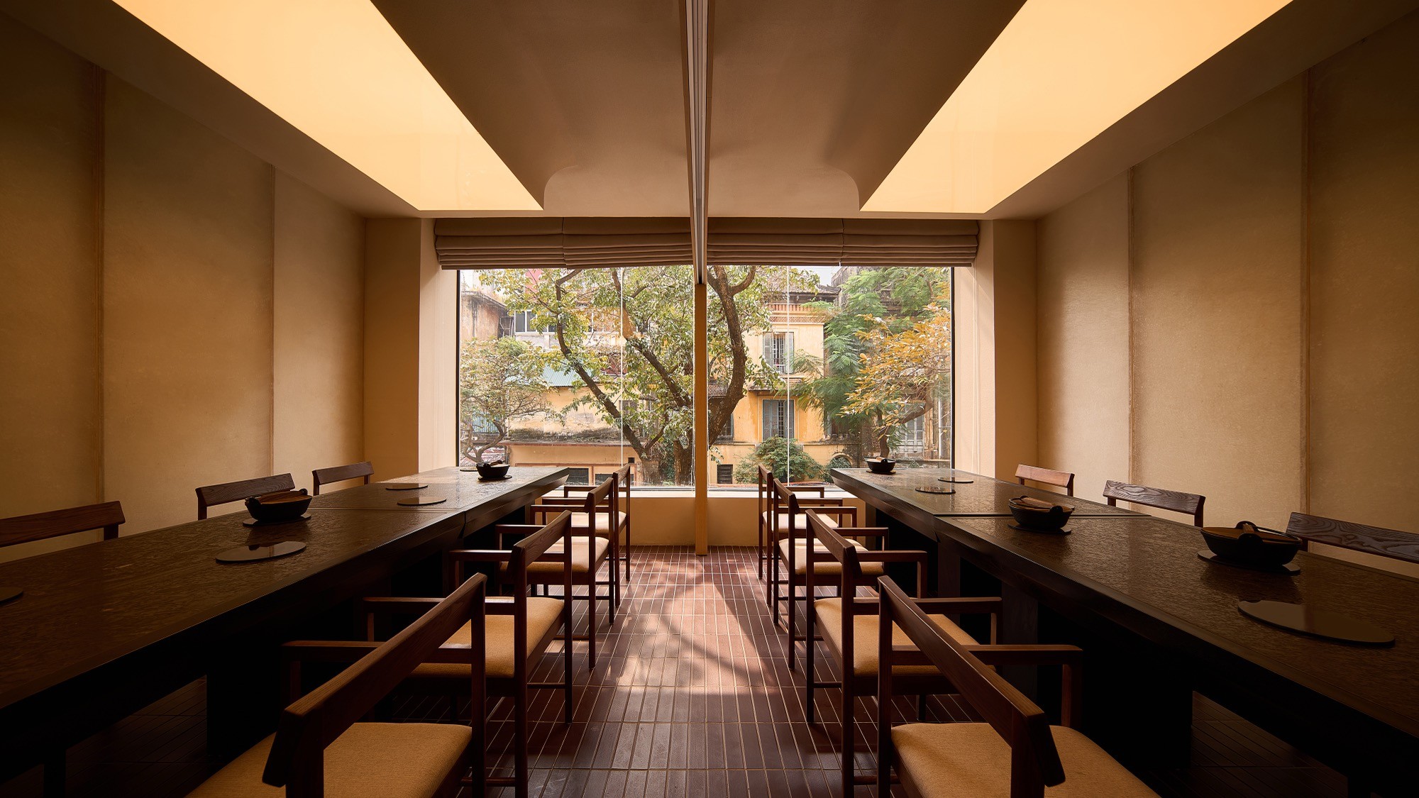 Cách tổ chức mặt bằng hướng đến sự tương tác, với các cụm ngồi đa dạng được đan xen, cho phép khoảng cách linh hoạt giữa riêng tư và cộng đồng. Trong cấu trúc đó, vật liệu tấm sợi thủy tinh kết hợp mica xuất hiện như một lớp xuyên sáng mới, vừa gợi nhớ, vừa tạo hiệu ứng thị giác khác biệt.