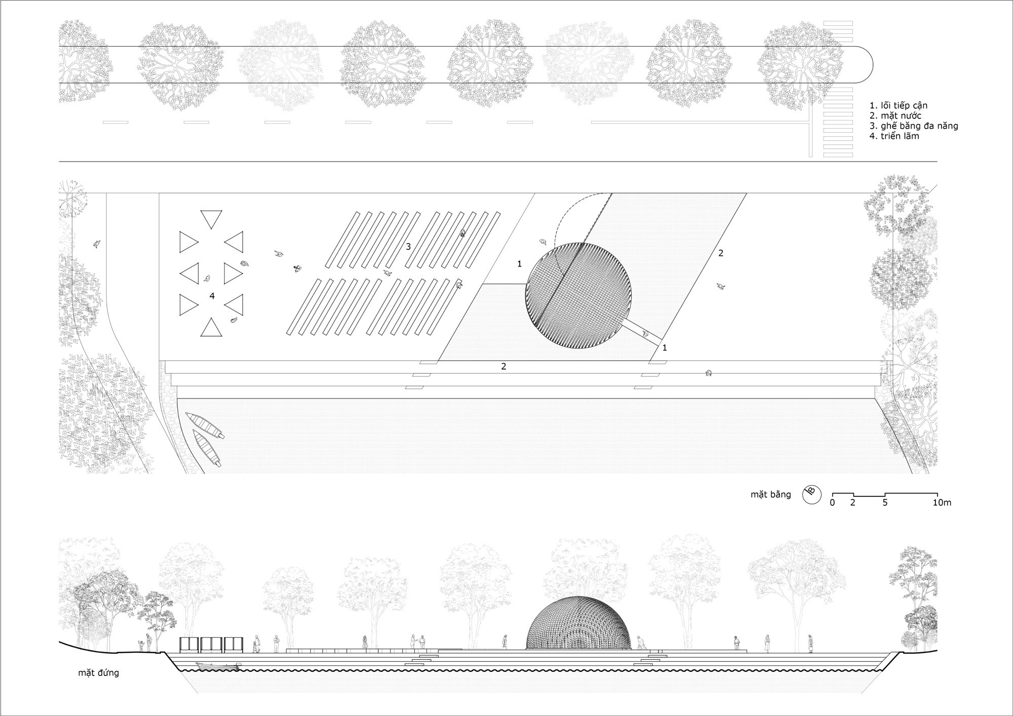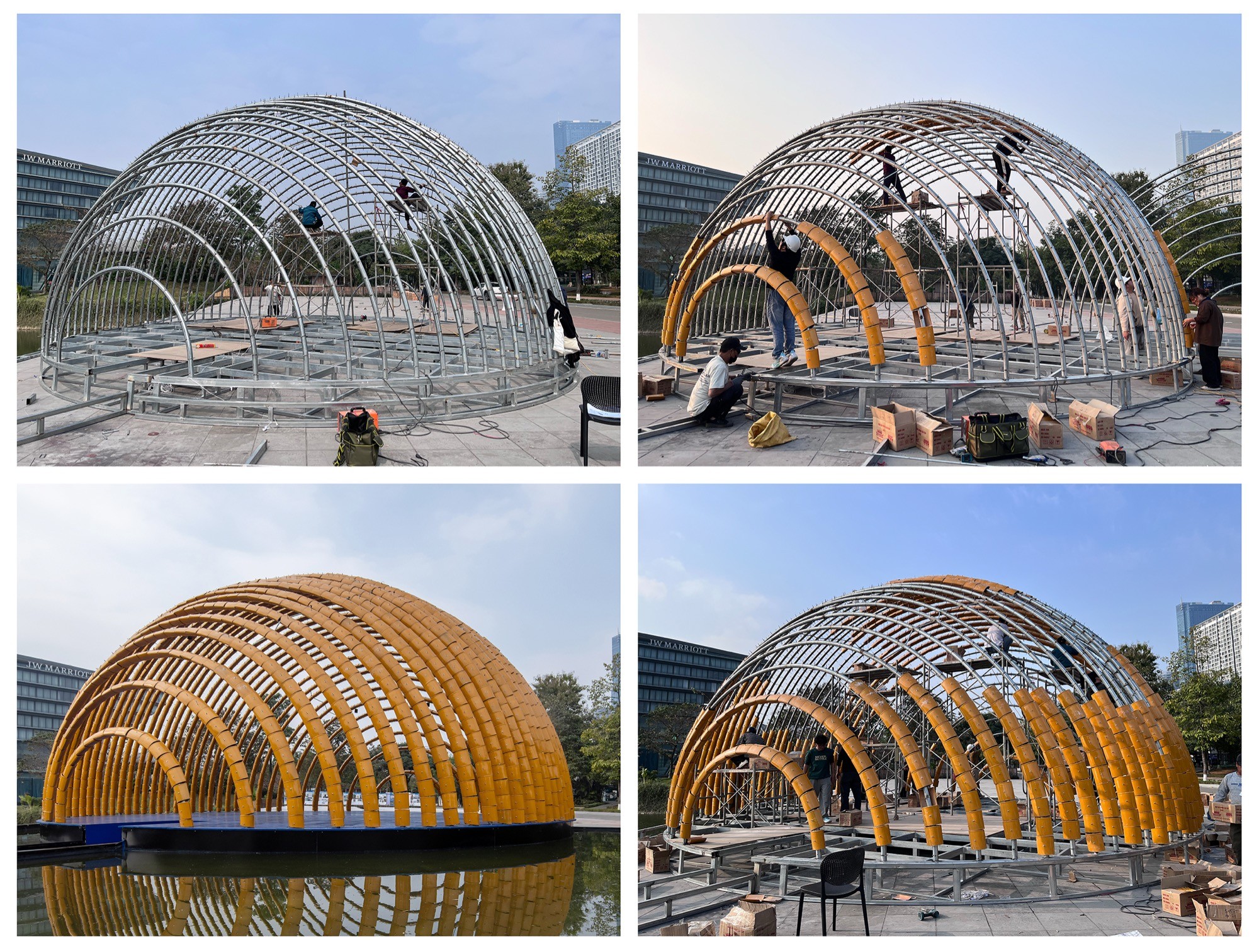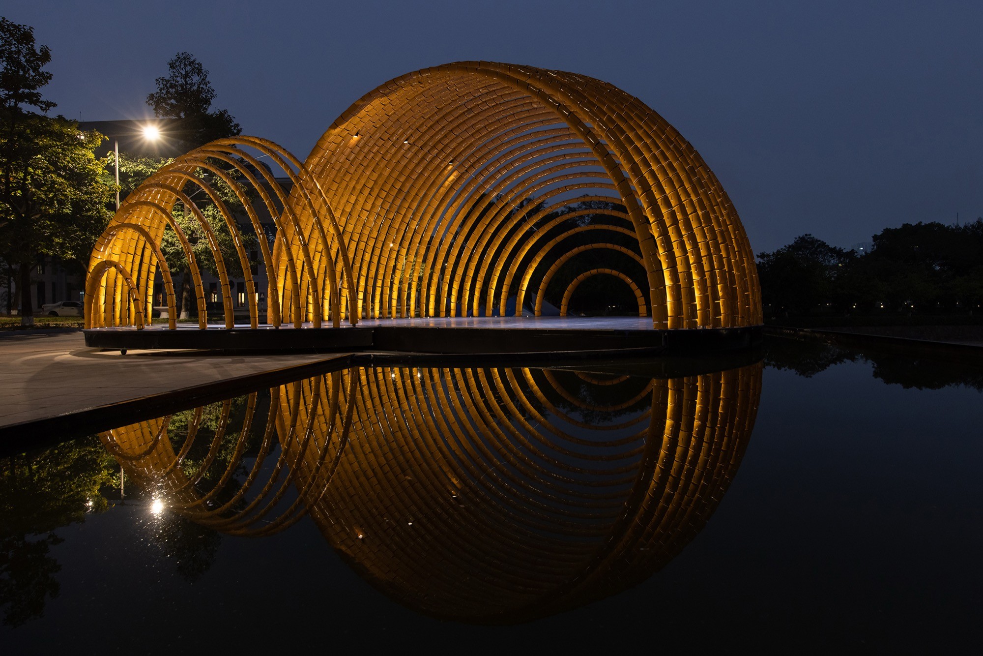 Công trình được tổ chức như một cấu trúc bán cầu đường kính 10 mét, tập hợp từ các đường cong liên tiếp, không gian bên trong có khả năng biến đổi linh hoạt: khi mở ra như một sân khấu cộng đồng, khi khép lại thành một trải nghiệm tĩnh, tập trung vào cảm nhận không gian và ánh sáng.