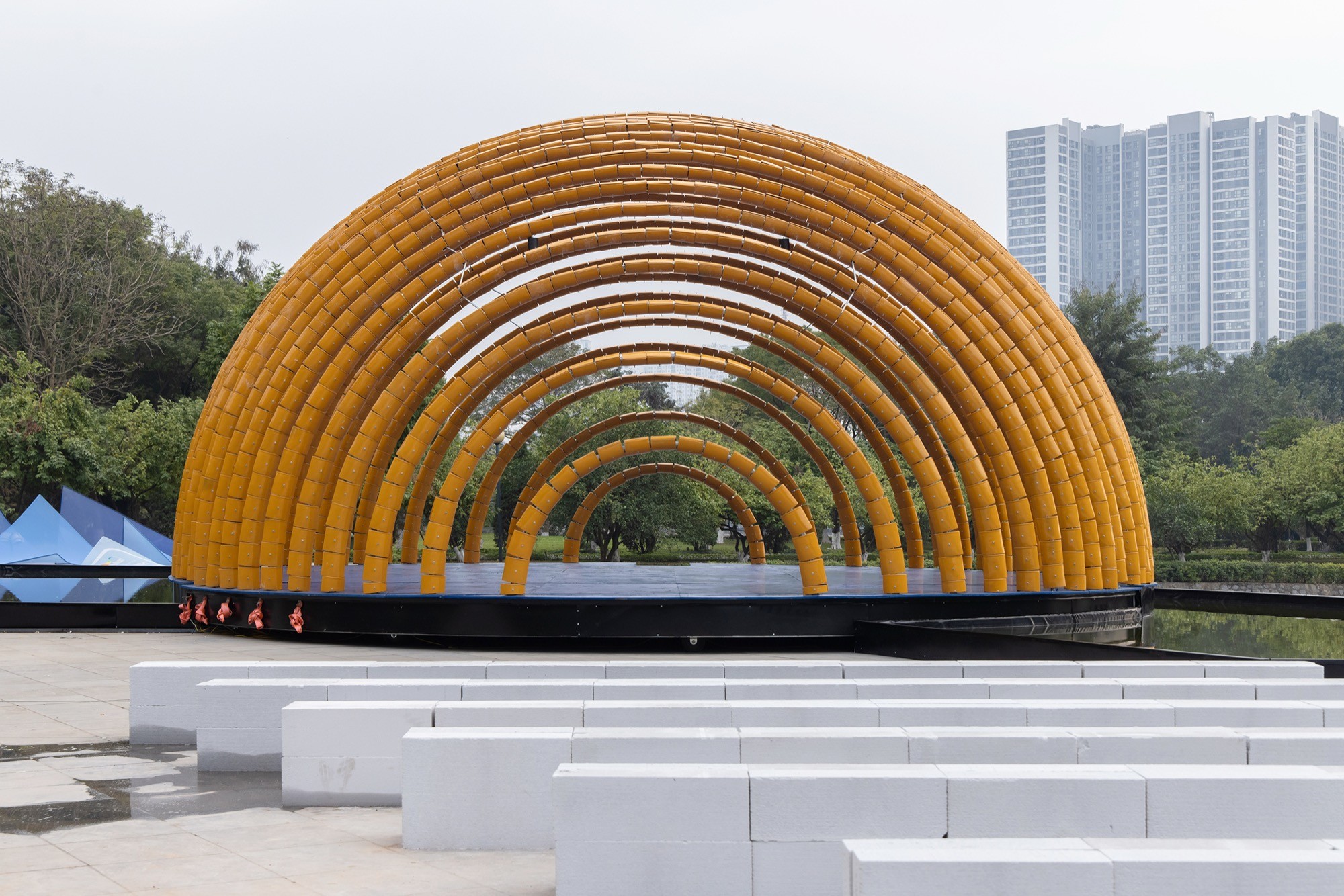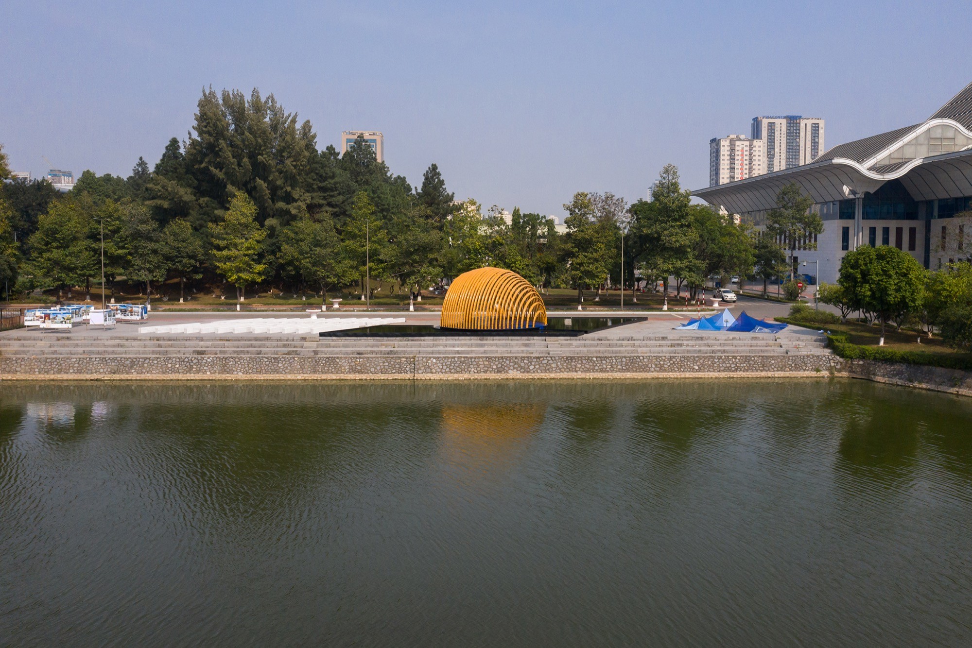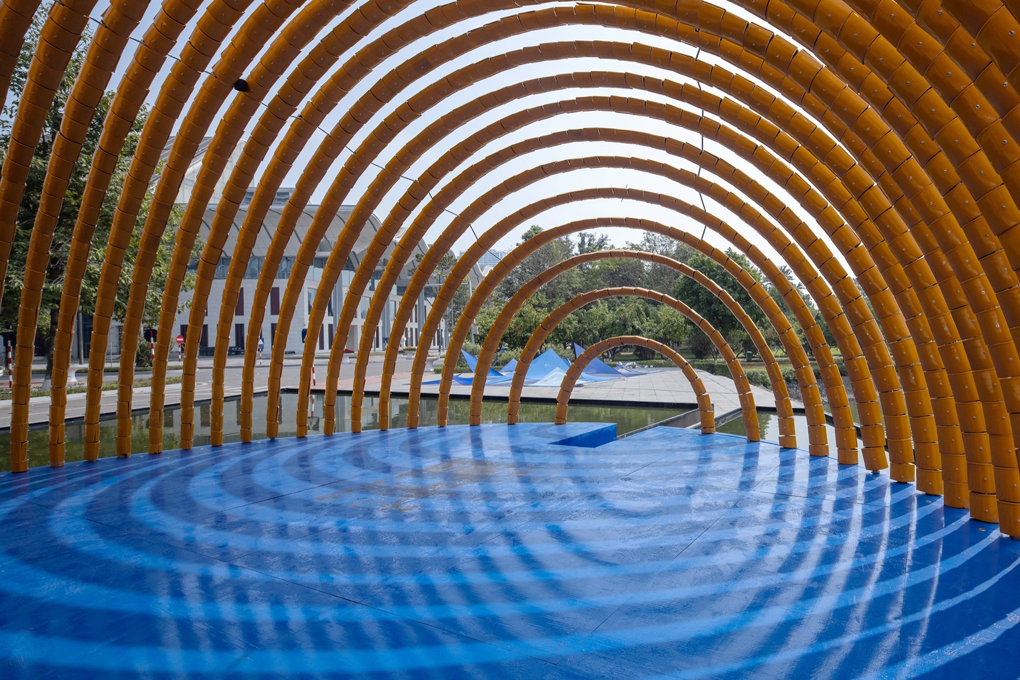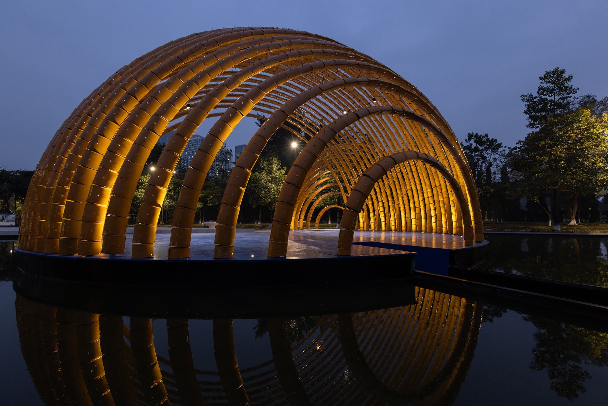 Công trình được tổ chức như một cấu trúc bán cầu đường kính 10 mét, tập hợp từ các đường cong liên tiếp, không gian bên trong có khả năng biến đổi linh hoạt: khi mở ra như một sân khấu cộng đồng, khi khép lại thành một trải nghiệm tĩnh, tập trung vào cảm nhận không gian và ánh sáng.
