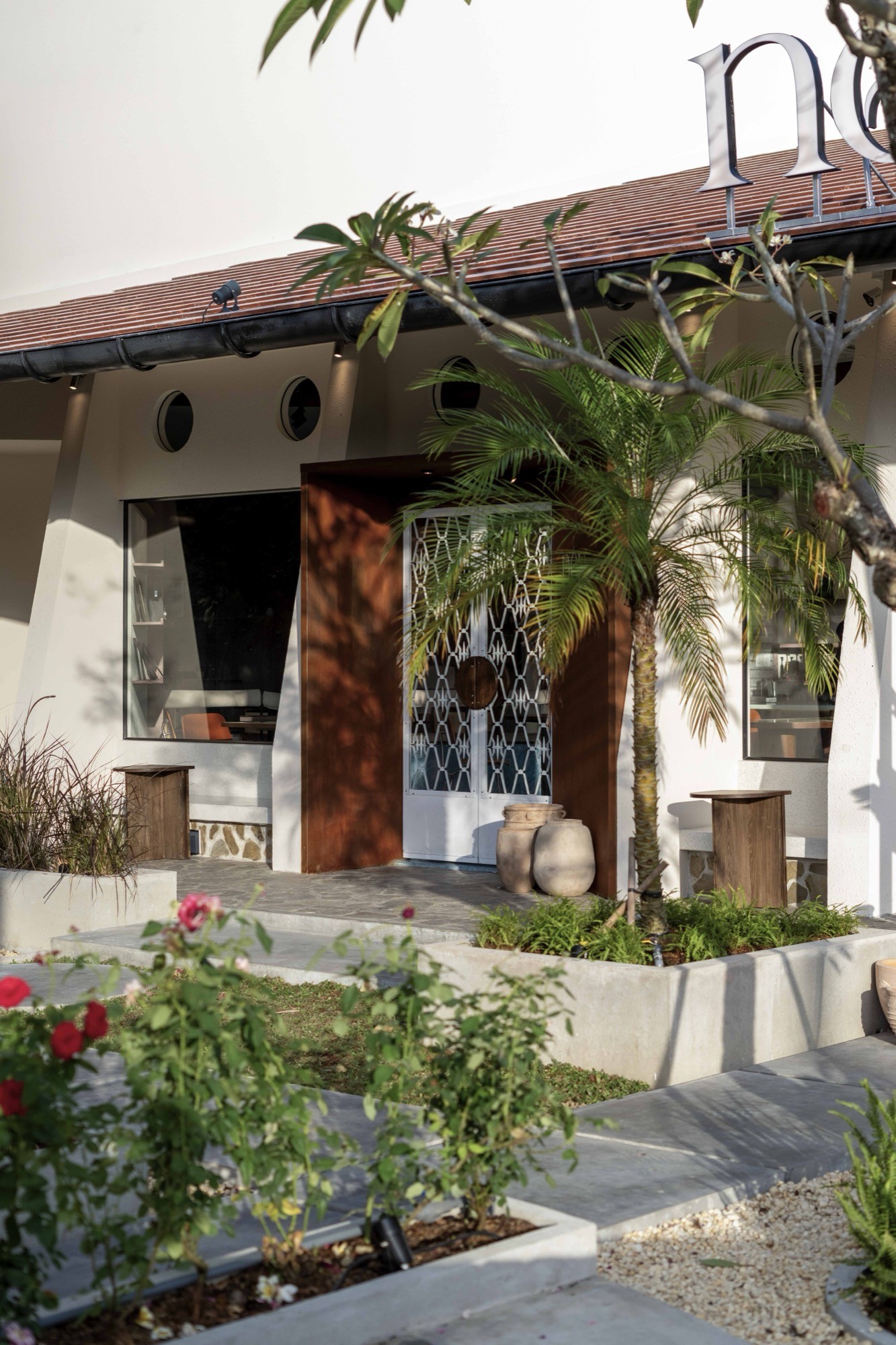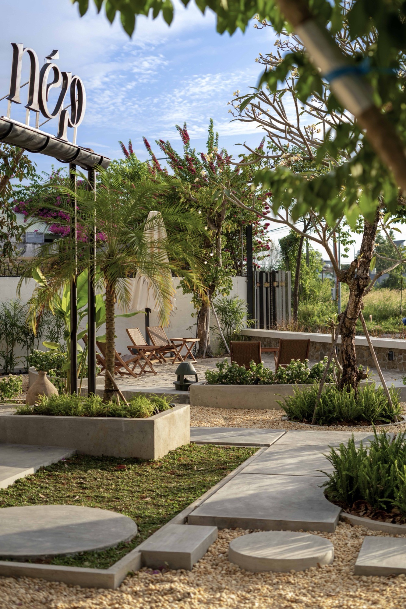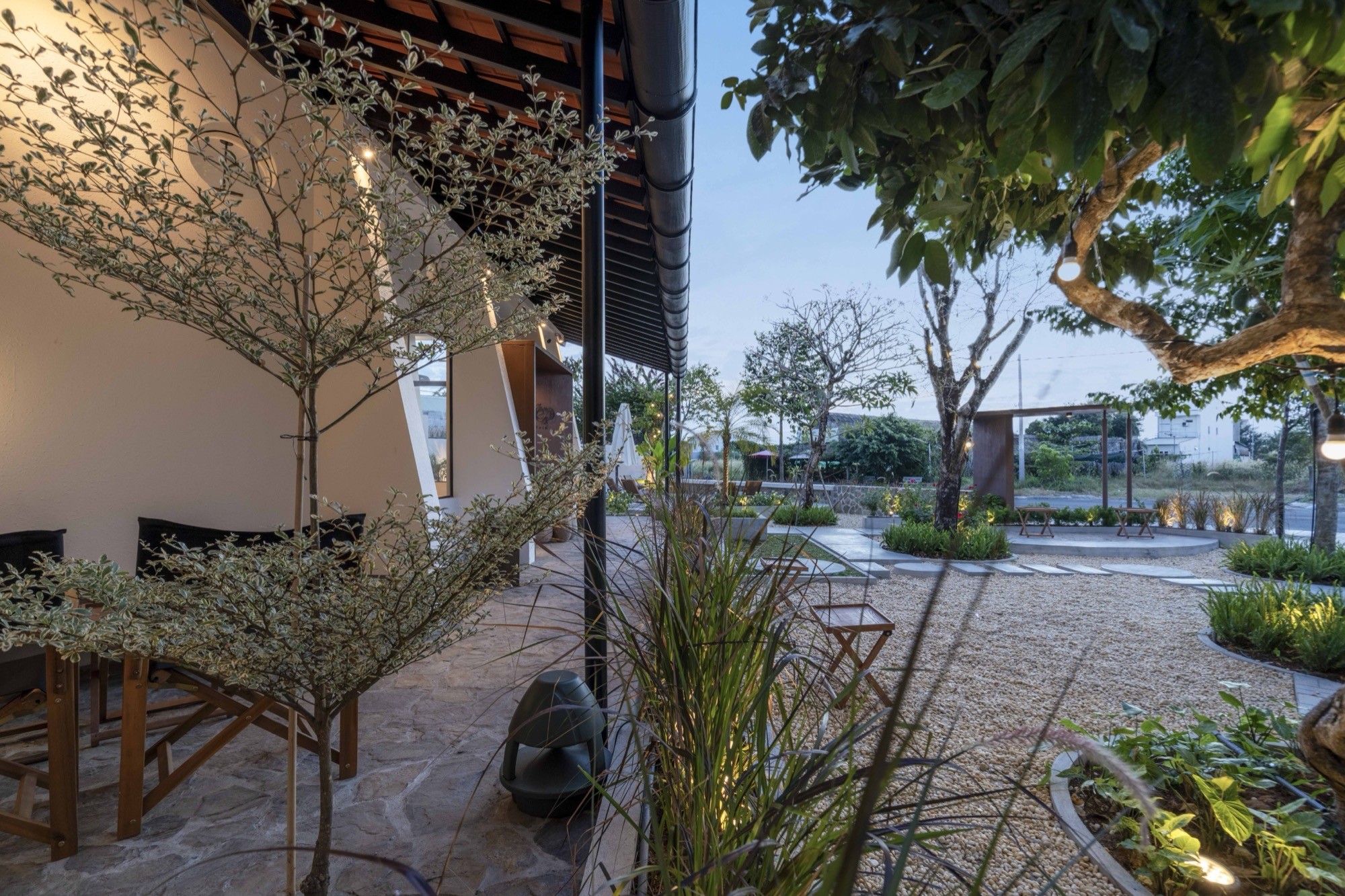 Chiến lược chính nằm ở việc đưa các yếu tố thiên nhiên và hình ảnh văn hóa bản địa vào tổ chức không gian, nhằm làm mềm đi tính chất công nghiệp ban đầu. Không gian quán được mở ra theo nhiều lớp, nơi ranh giới giữa trong và ngoài được làm mờ thông qua cây xanh, ánh sáng và các khoảng chuyển tiếp. Các yếu tố này không chỉ đóng vai trò trang trí, mà trở thành cấu phần tổ chức trải nghiệm, giúp điều tiết vi khí hậu và tạo nên nhịp điệu sử dụng.