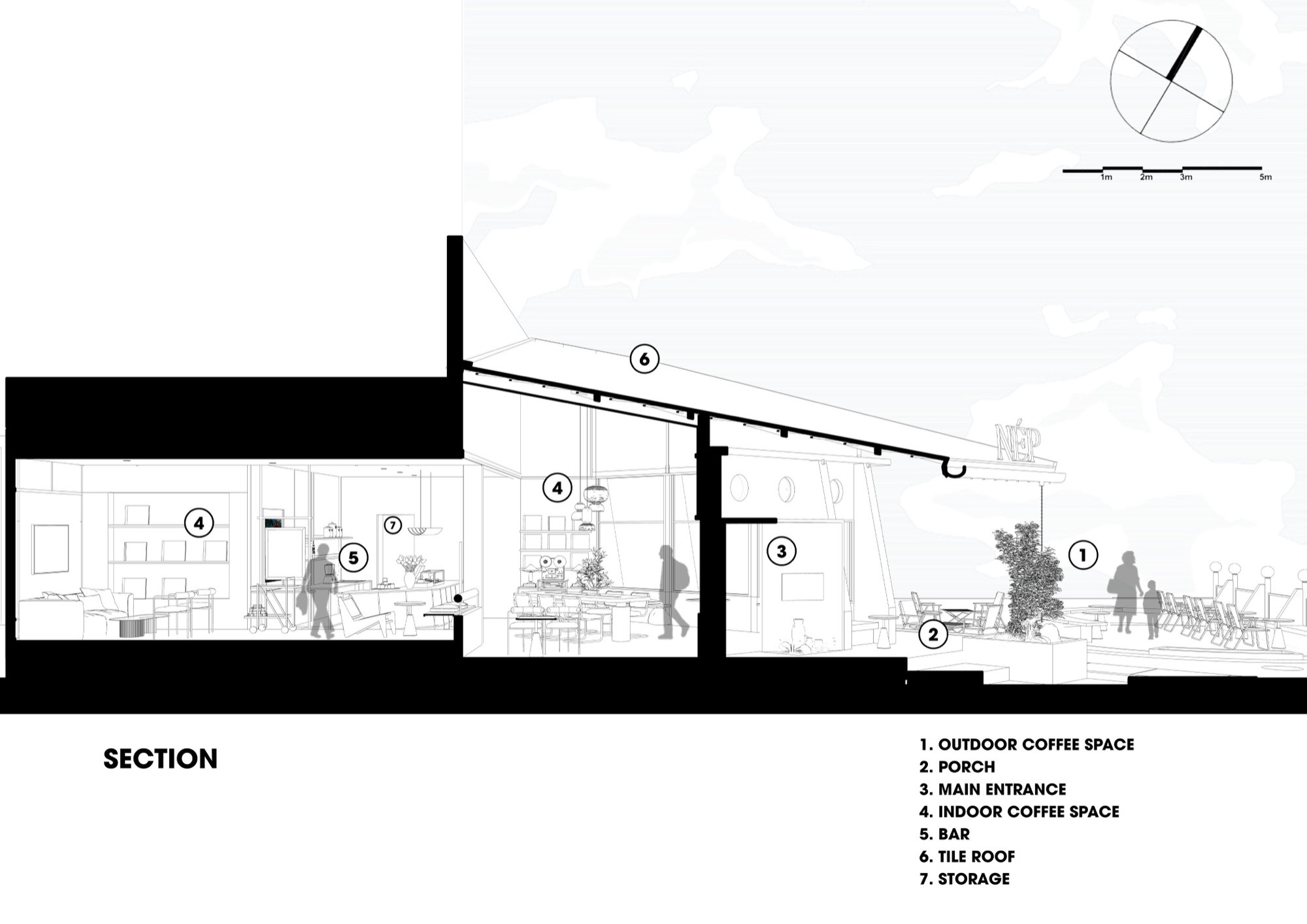 Công trình được cải tạo từ nền một nhà xưởng cũ, nơi vốn mang đặc trưng khô cứng, đóng kín và thiên về công năng sản xuất. Thách thức đặt ra không chỉ là thay đổi chức năng, mà là tái cấu trúc toàn bộ trải nghiệm không gian, chuyển từ môi trường công nghiệp sang một quán cà phê có khả năng gợi mở cảm giác gần gũi và thư giãn. Thiết kế vì vậy không đi theo hướng che giấu quá khứ, mà chọn cách tái diễn giải, đưa những lớp nghĩa mới vào trong một khung cấu trúc sẵn có.