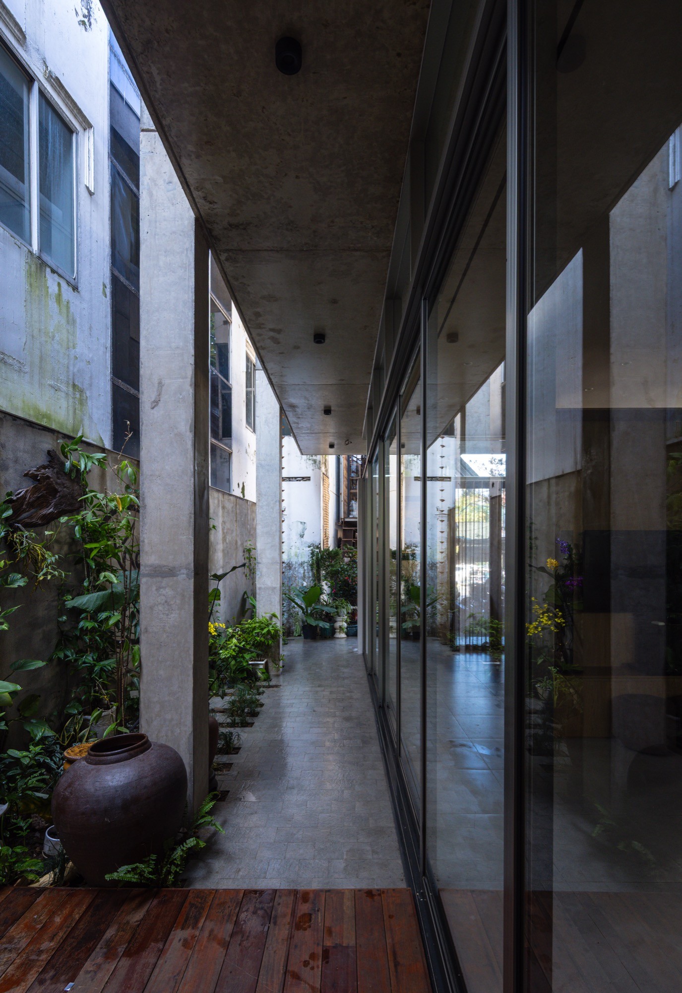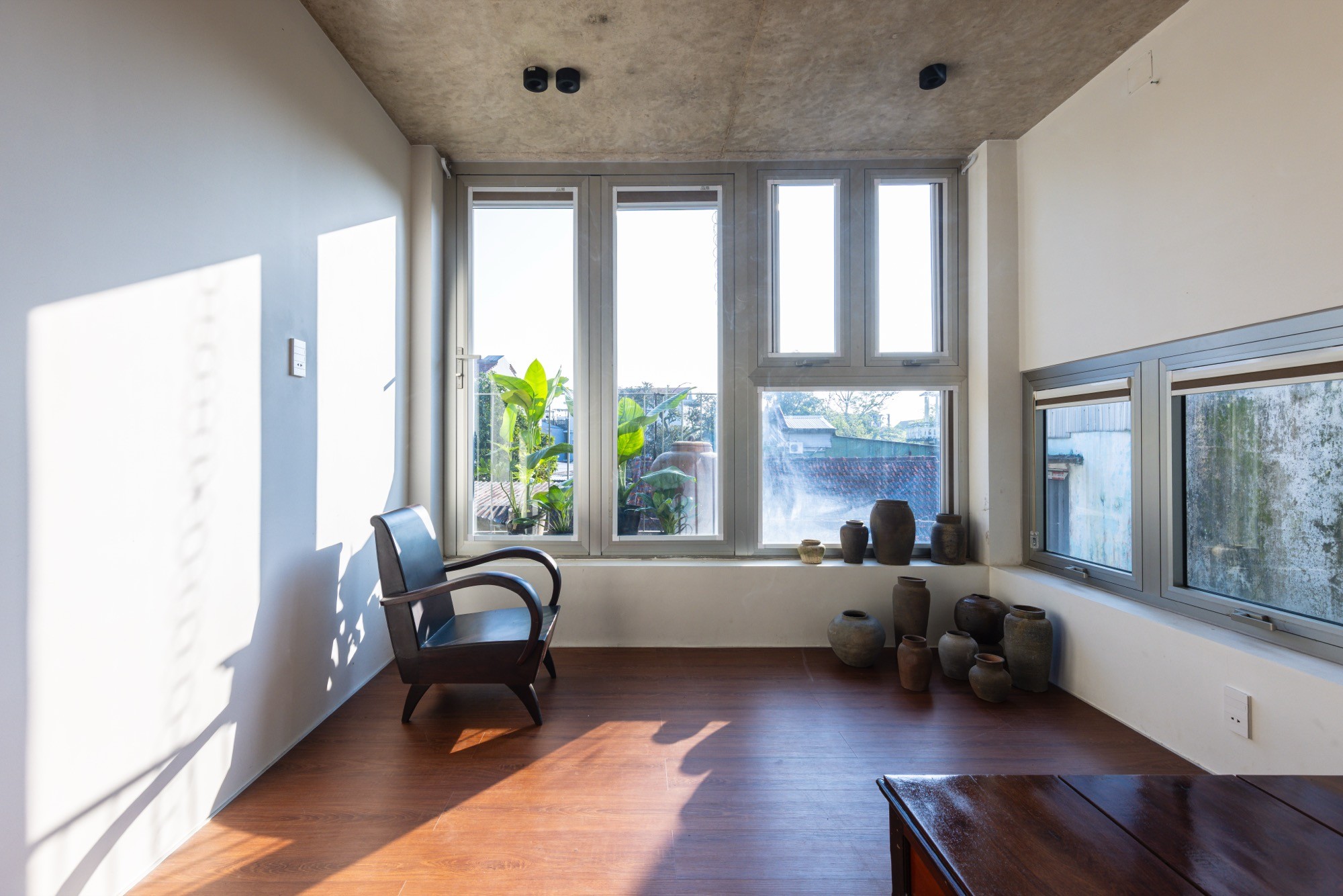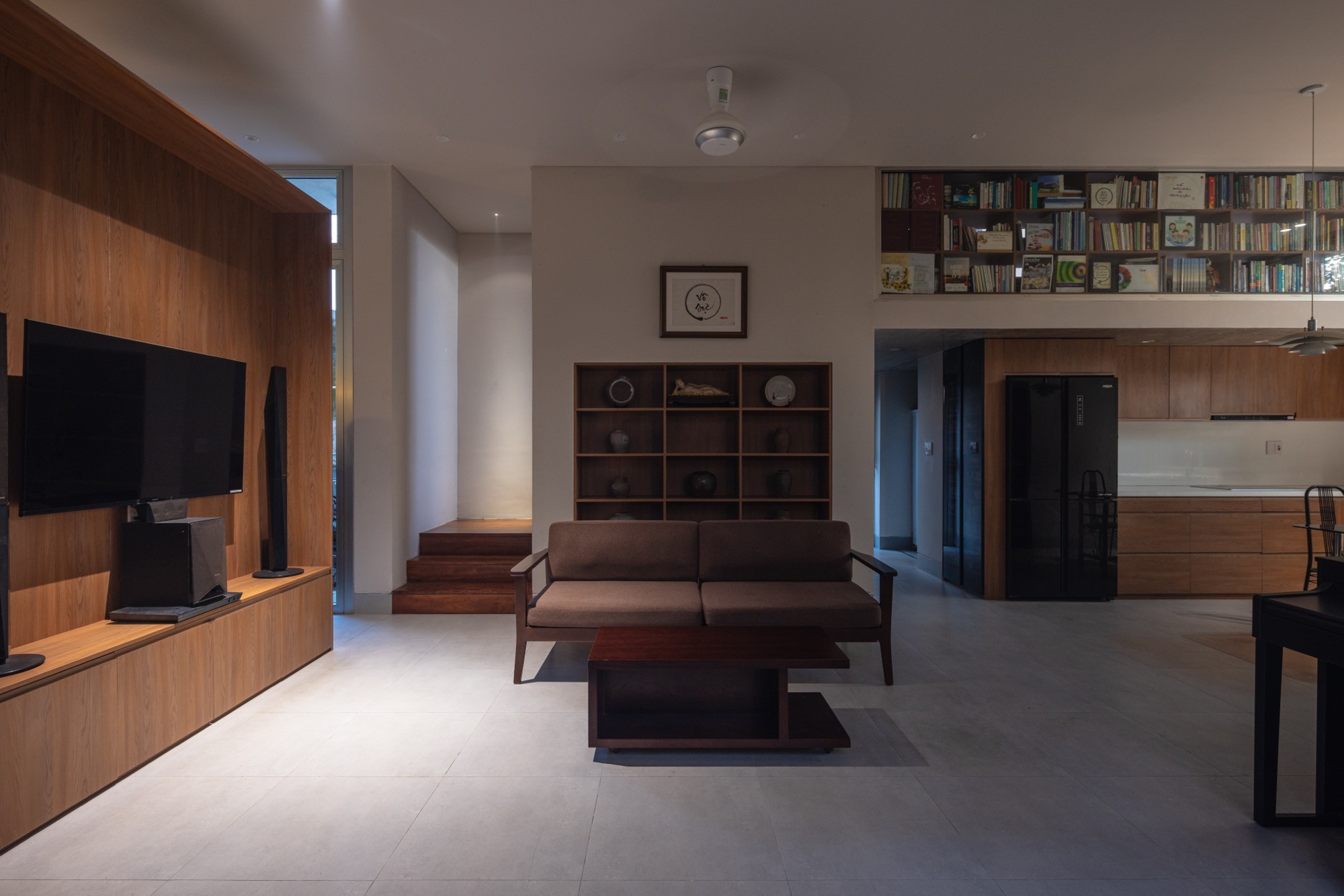 Không gian thờ được giữ nguyên tại vị trí của ngôi nhà cũ, từ vị trí đó, kiến trúc được triển khai xoay quanh, thiết lập mối quan hệ liên tục giữa cái mới và lớp ký ức hiện hữu. Một hệ mái bê tông lớn bao phủ toàn bộ công trình, tạo nên một vùng bao thống nhất. Dưới lớp mái này, các không gian liên kết thông qua cao độ, ánh sáng và khoảng rỗng, hạn chế sự phân chia bằng vách ngăn cứng.