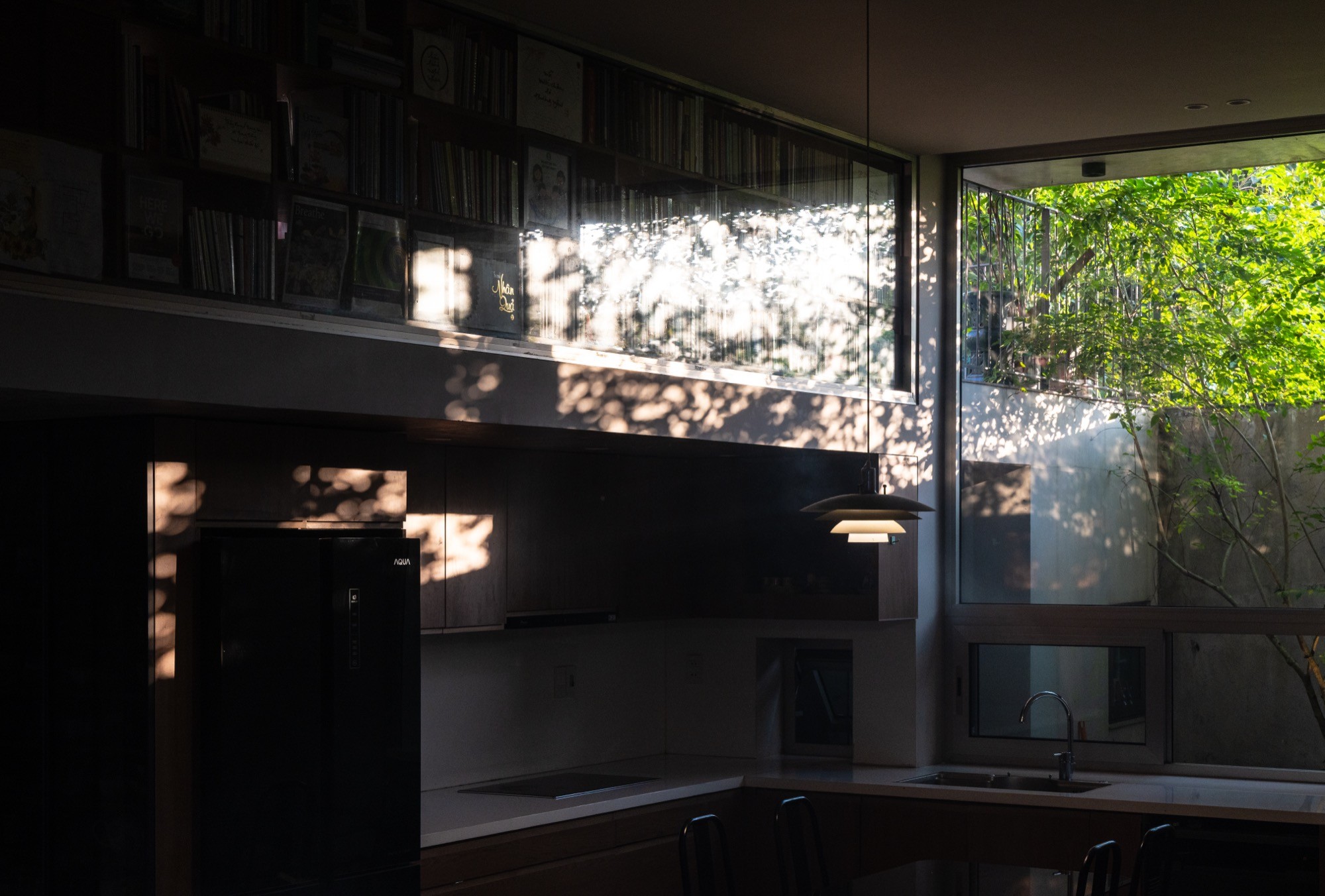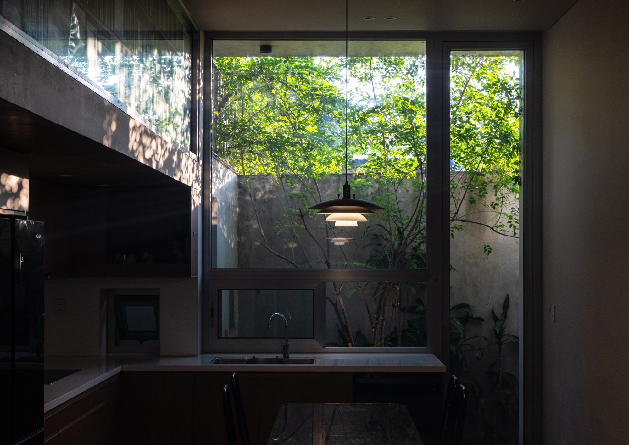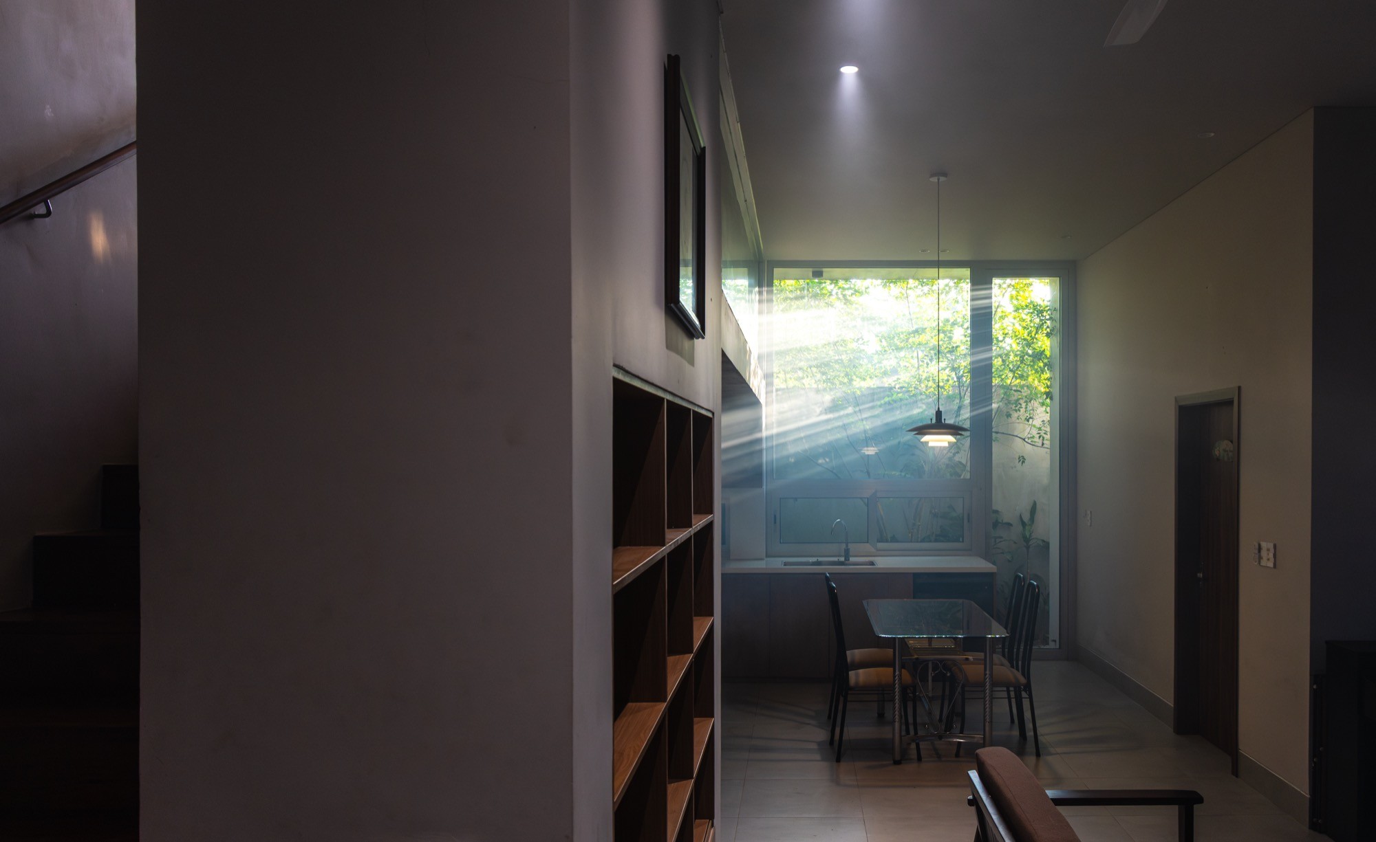 Khu đất đa cạnh rộng 260m² cùng các yêu cầu nghiêm ngặt về khoảng lùi đã đặt ra những giới hạn rõ ràng cho việc xây dựng. Trước bối cảnh đó, nhóm thiết kế chủ động không theo đuổi việc tối đa hóa diện tích sử dụng, mà tổ chức hệ thống khoảng trống và không gian đệm theo hướng tối ưu nhằm đưa ánh sáng, thông gió tự nhiên, cây xanh và sự tĩnh lặng thâm nhập sâu vào cấu trúc ở.