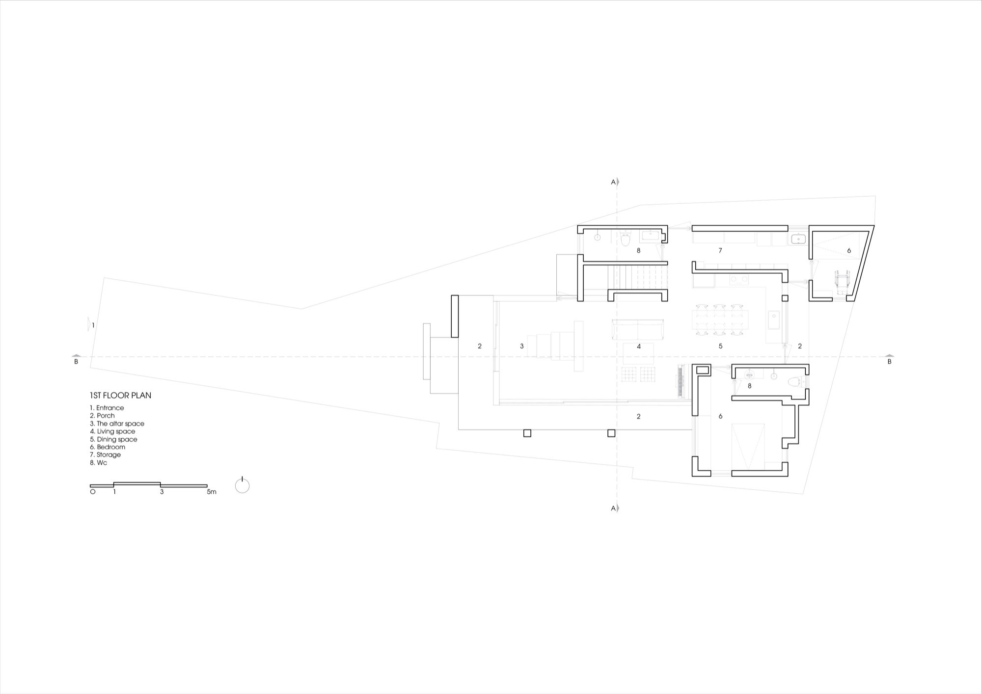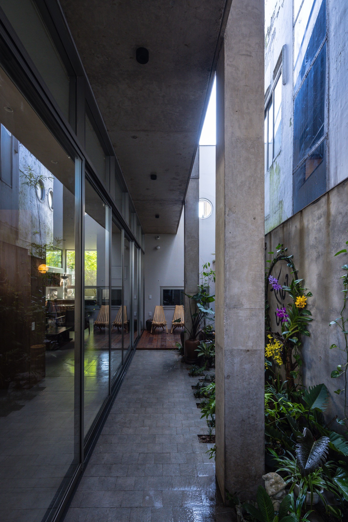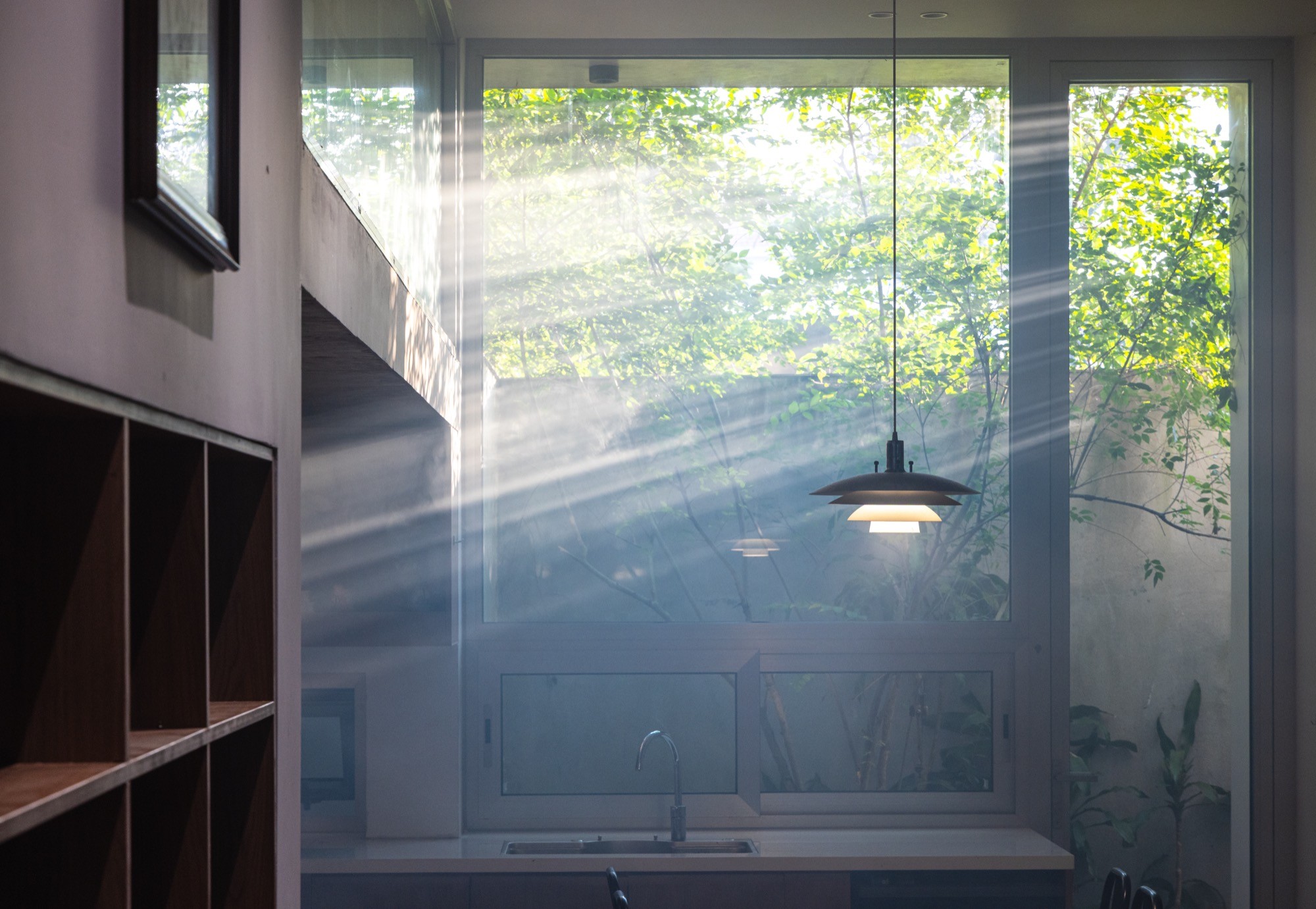Khu đất đa cạnh rộng 260m² cùng các yêu cầu nghiêm ngặt về khoảng lùi đã đặt ra những giới hạn rõ ràng cho việc xây dựng. Trước bối cảnh đó, nhóm thiết kế chủ động không theo đuổi việc tối đa hóa diện tích sử dụng, mà tổ chức hệ thống khoảng trống và không gian đệm theo hướng tối ưu nhằm đưa ánh sáng, thông gió tự nhiên, cây xanh và sự tĩnh lặng thâm nhập sâu vào cấu trúc ở.