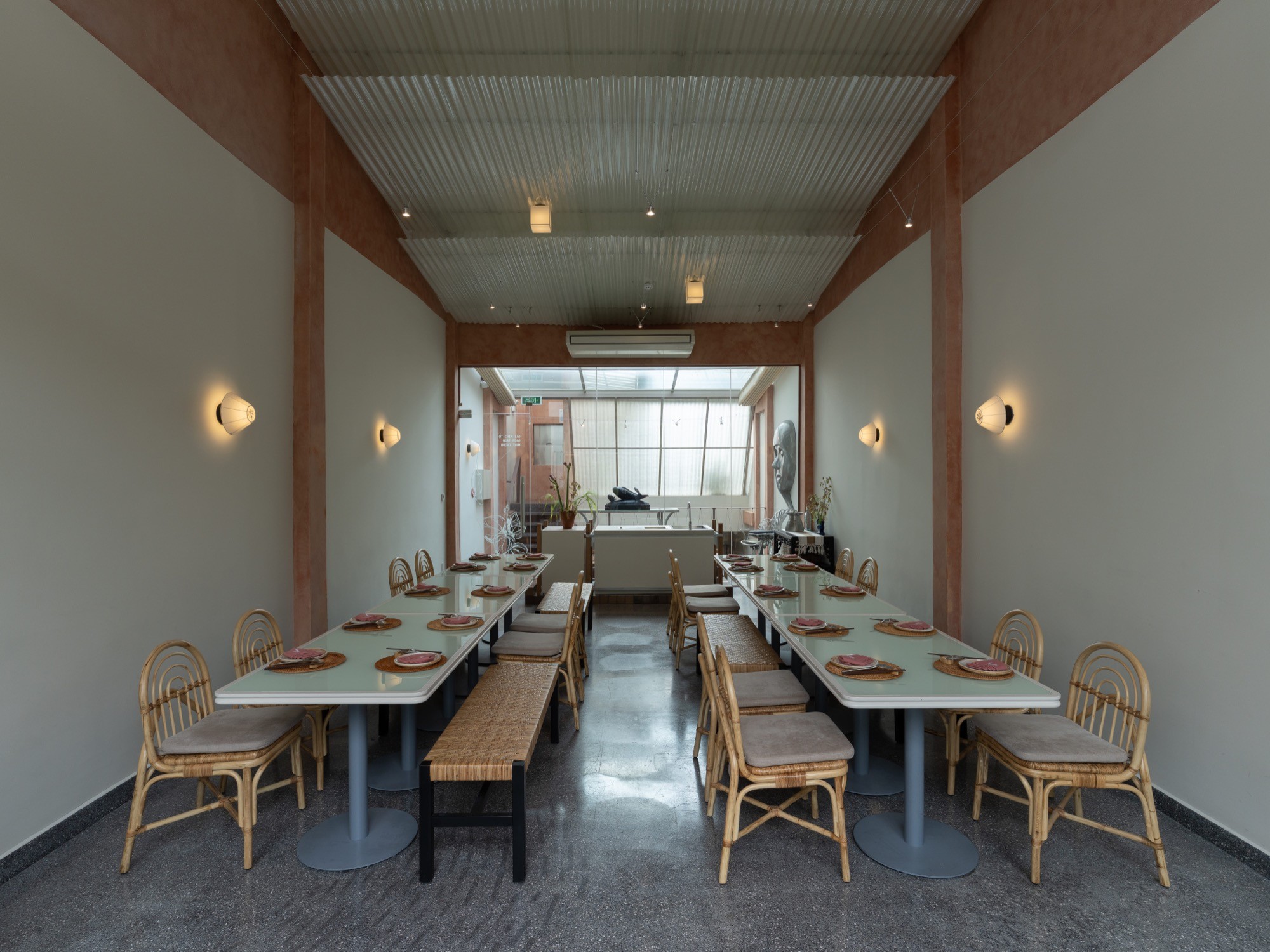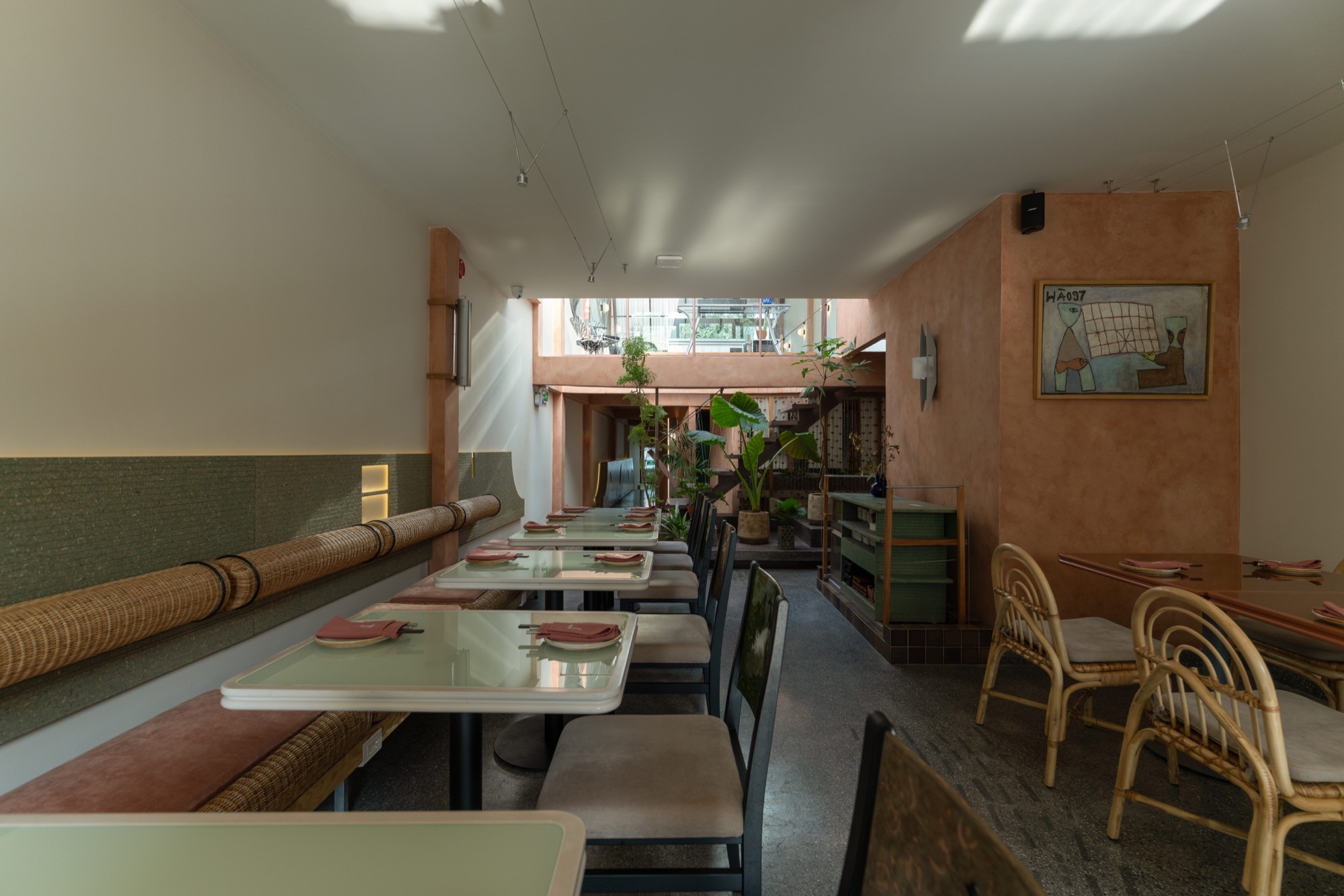 Sự hiện diện của cây rau gia vị, họa tiết và các vật dụng trang trí mang lại cảm giác gần gũi, đồng thời thiết lập một trải nghiệm đan xen giữa ẩm thực và không gian, nơi việc cảm nhận không chỉ dừng lại ở thị giác mà mở rộng sang các giác quan khác.