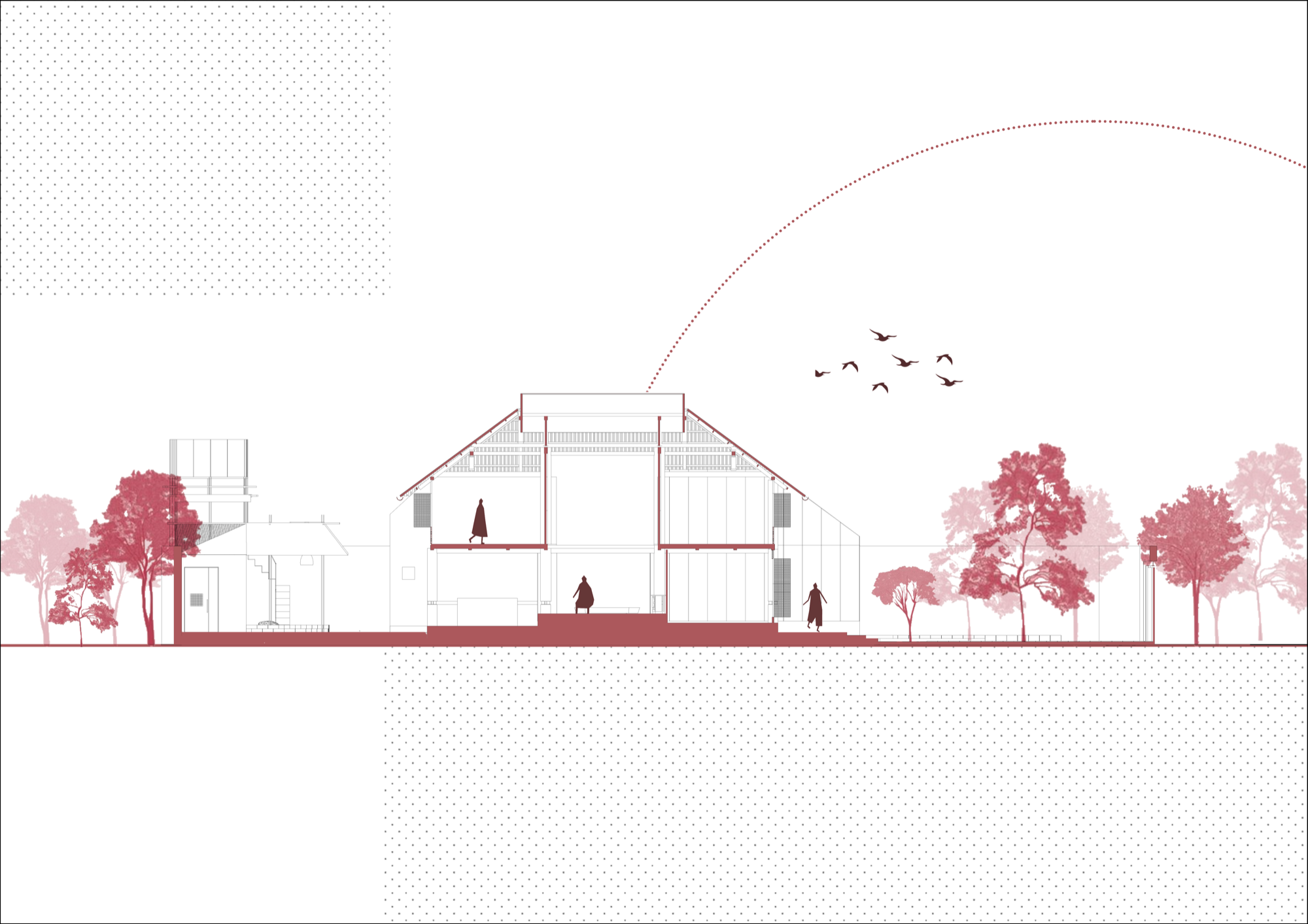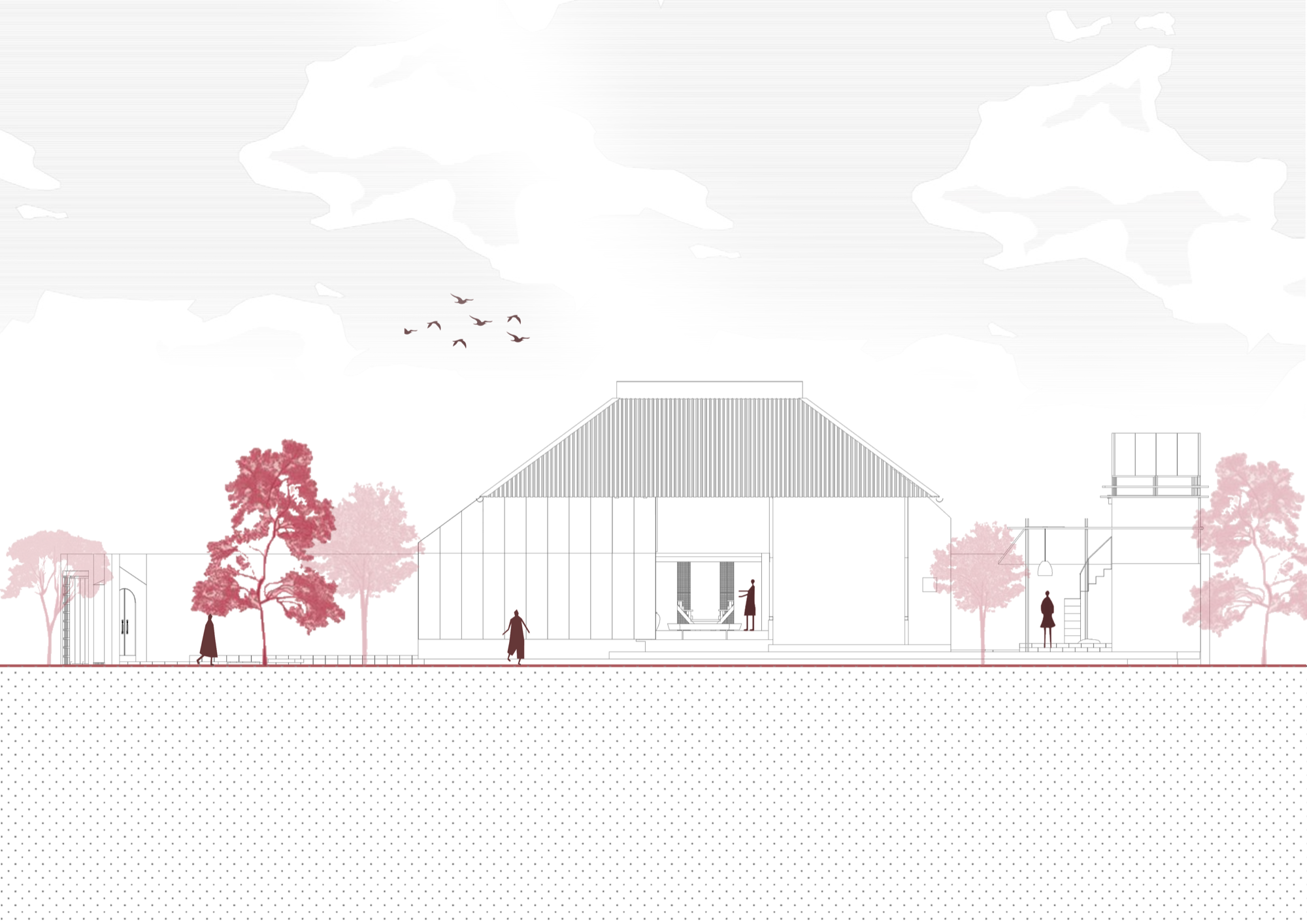 Kiến trúc ở đây mang dáng dấp giản dị, gần gũi. Những vật liệu và cấu kiện cũ được giữ lại, tái sử dụng, giúp ranh giới giữa cũ và mới vì thế trở nên mềm hơn, mở ra khả năng đối thoại liên tục giữa các lớp thời gian.