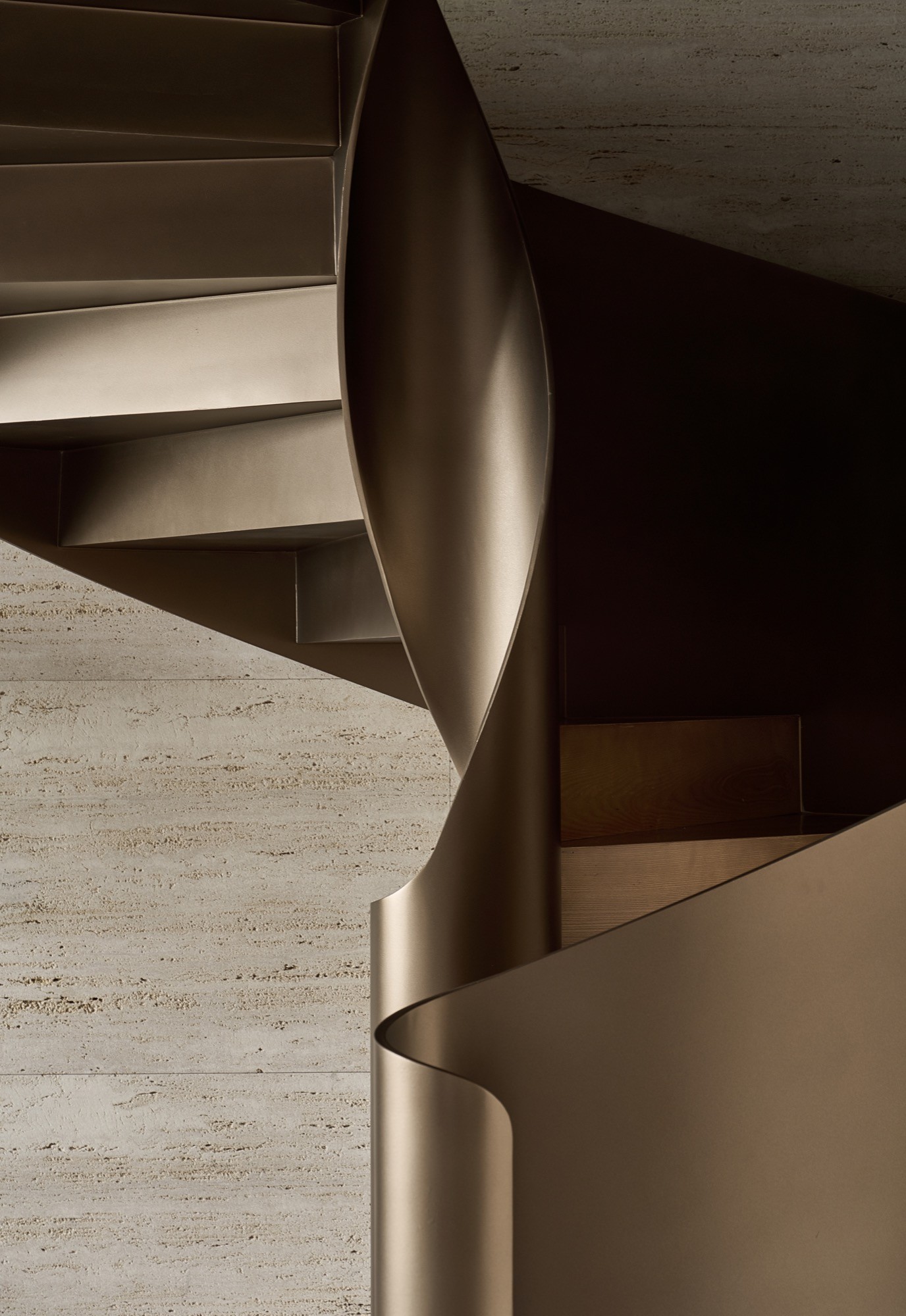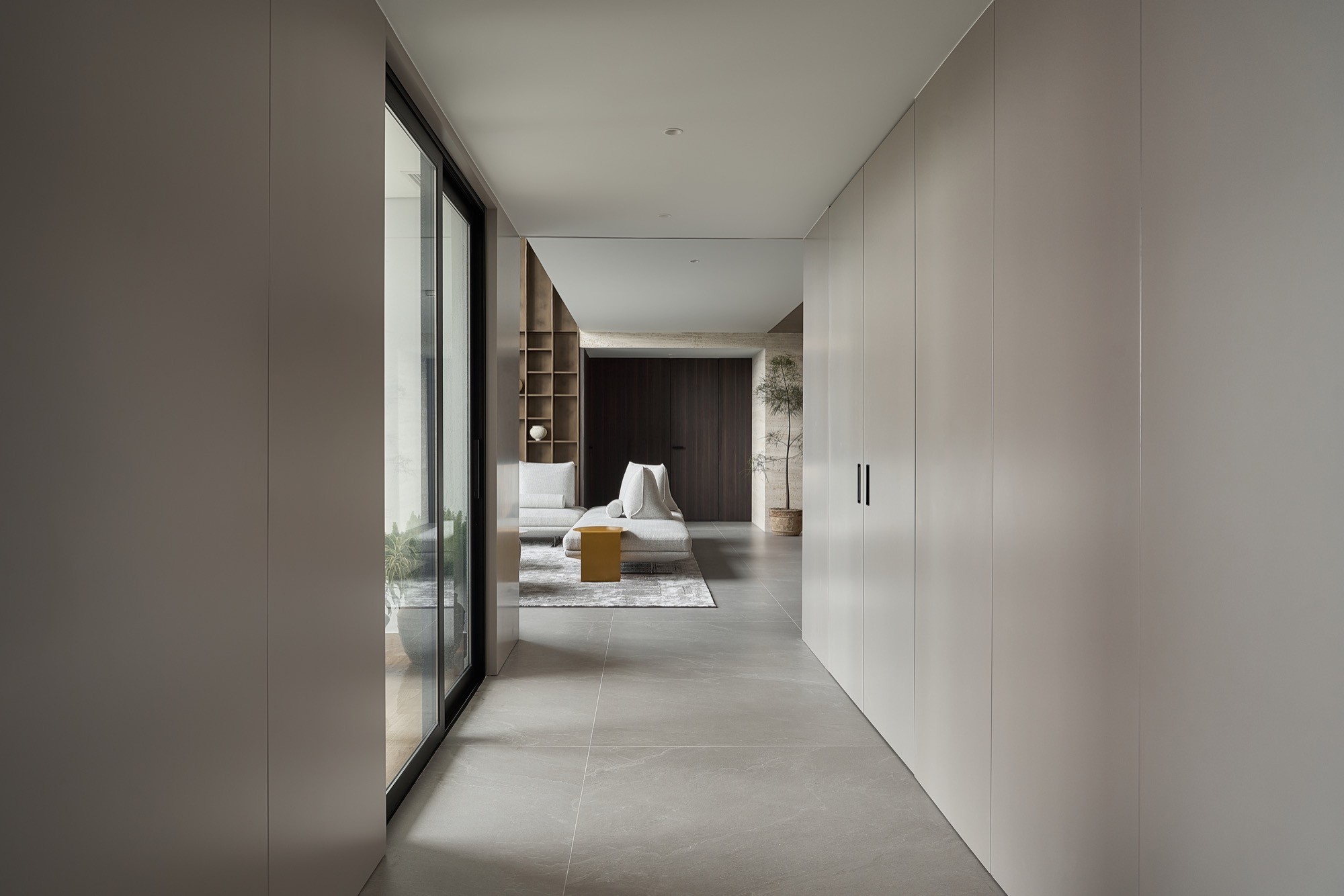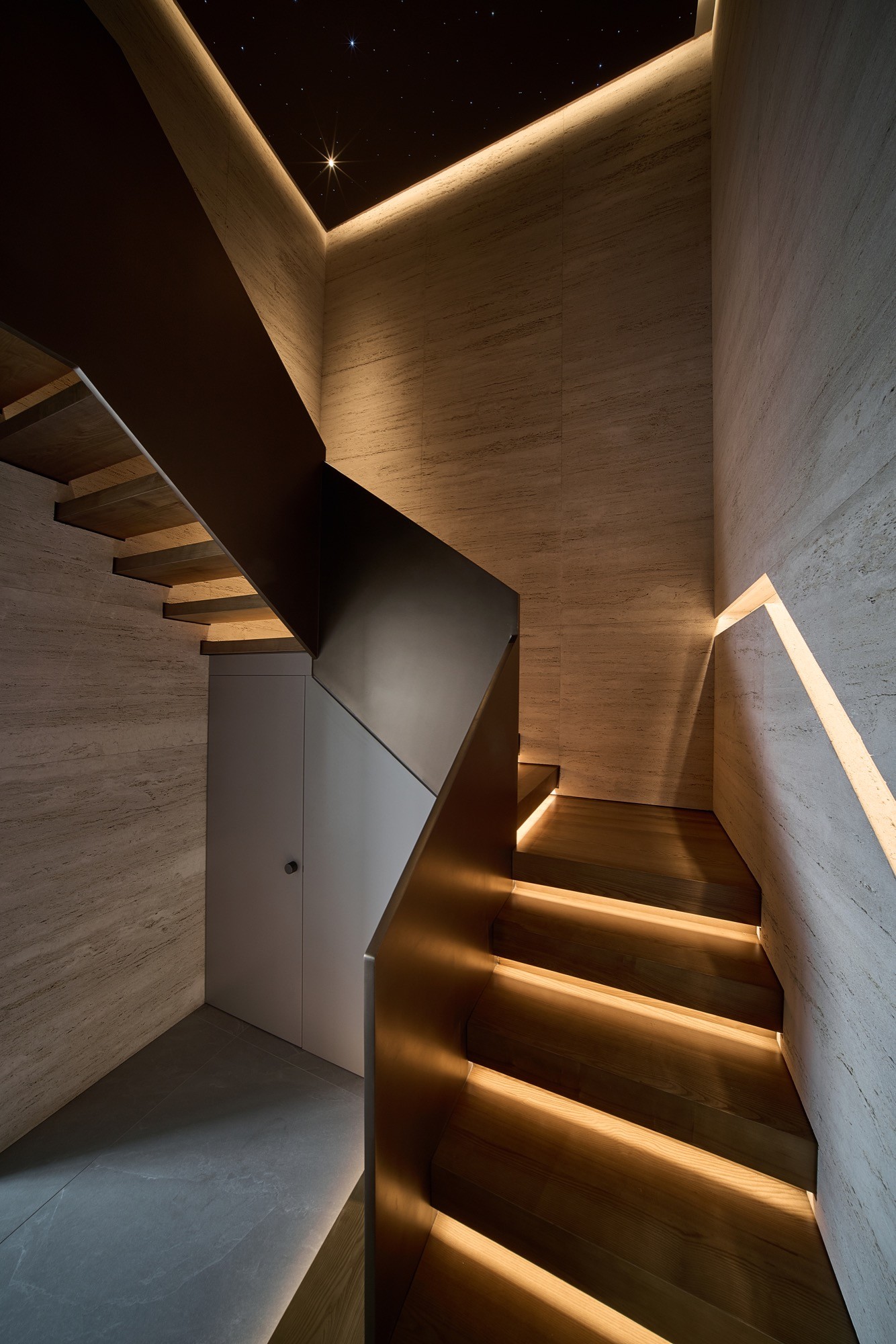 Ở đây, dòng chuyển động không còn bị giới hạn trong mặt bằng, mà được kéo giãn theo chiều cao, len lỏi qua các khoảng thông tầng, cầu thang và những khoảng rỗng đóng vai trò dẫn dắt hơn là ngăn chia. Từ đó, kiến trúc dần định hình như một hành trình mở, vừa riêng tư, vừa liên thông. Một bên là các không gian chức năng được sắp đặt chặt chẽ, bên còn lại mở ra ánh sáng và tầm nhìn, tạo nên sự cân bằng giữa nội tại và ngoại cảnh.