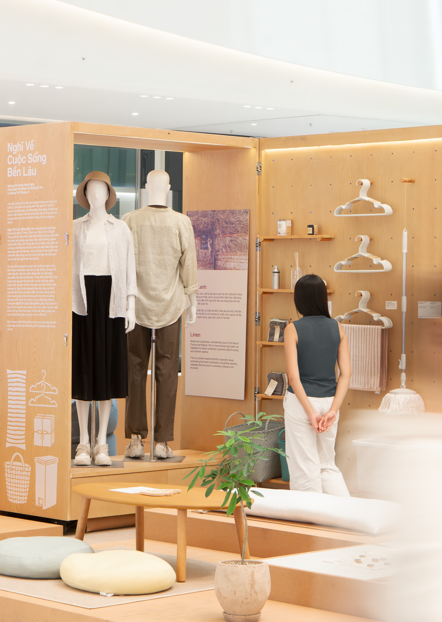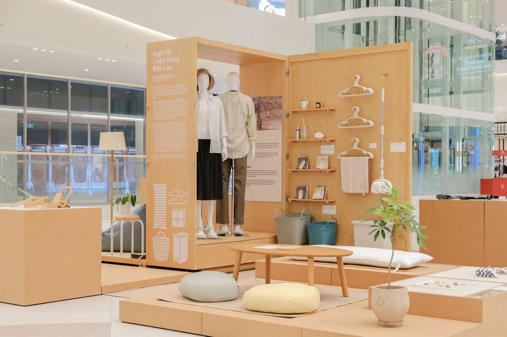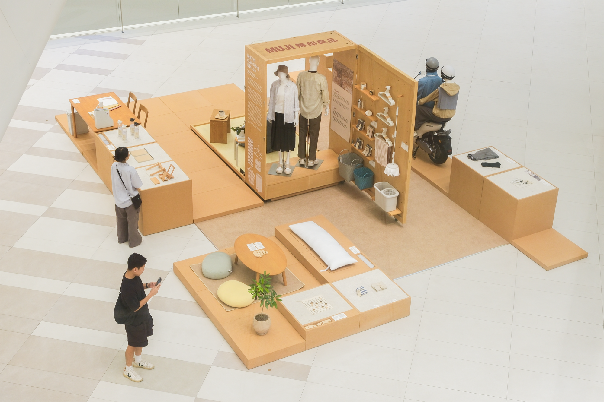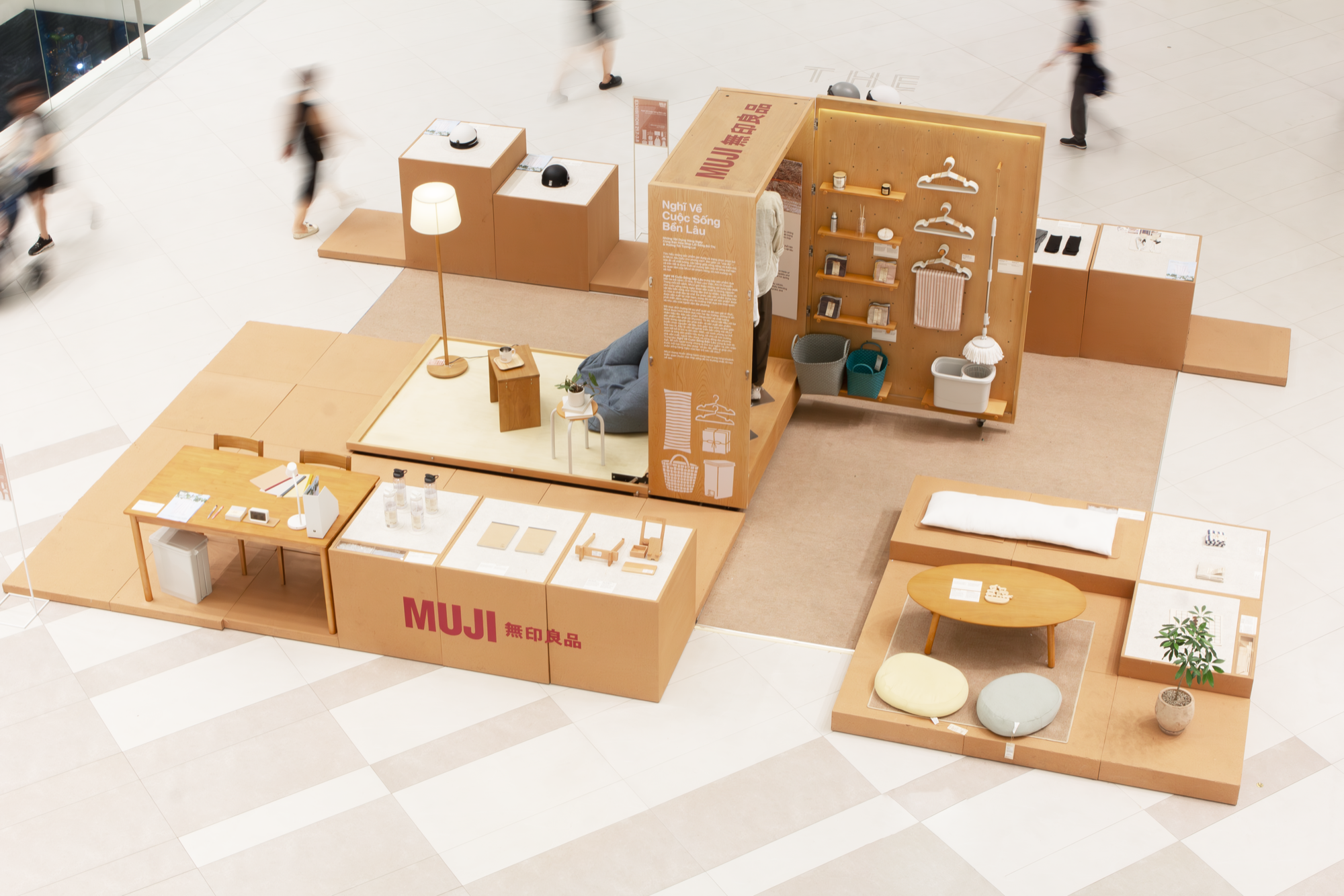The MUJI Box được hình dung như một cấu kiện trưng bày có tính cô đọng cao, nơi các nguyên tắc cốt lõi của MUJI được chuyển hóa trực tiếp thành hình khối và cách vận hành. Thay vì diễn giải triết lý thiết kế bằng hình ảnh hay đồ họa, cấu trúc này lựa chọn một phương thức rõ ràng hơn: tổ chức không gian, vật liệu và chuyển động thành một hệ thống có thể đọc được ngay trong trải nghiệm sử dụng.