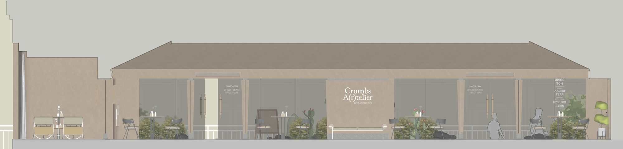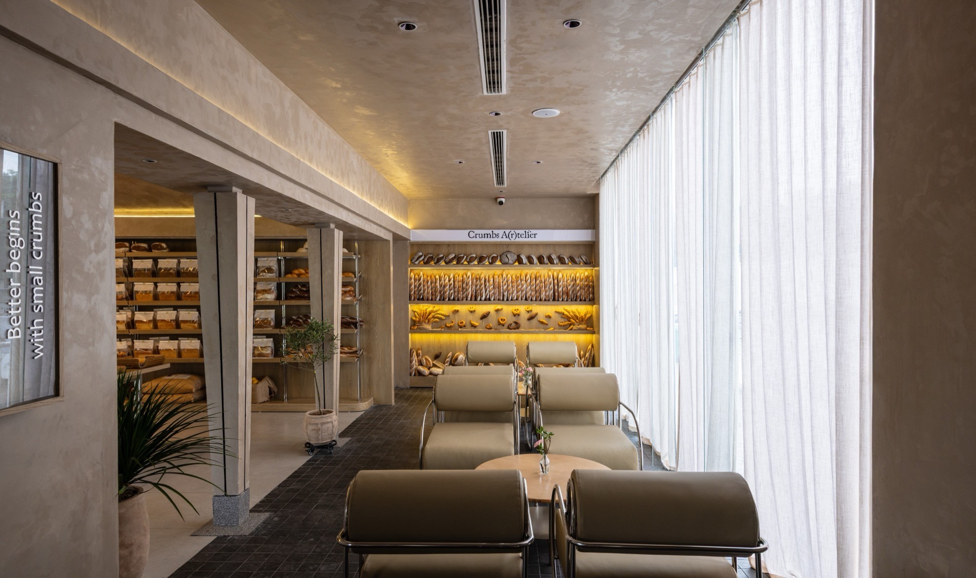 Ý tưởng chủ đạo được phát triển từ câu chuyện thương hiệu, nơi những “vụn vặt” đời thường trở thành điểm khởi đầu cho cảm xúc. Hình ảnh “mái nhà chung” được trừu tượng hóa thành một hệ ngôn ngữ xuyên suốt, từ mặt tiền đến không gian nội thất, nhằm tạo ra cảm giác gần gũi nhưng không kém phần nhận diện. Đây cũng là cách công trình định vị nhóm khách hàng trẻ, những người tìm kiếm trải nghiệm mới trong các không gian F&B đô thị.