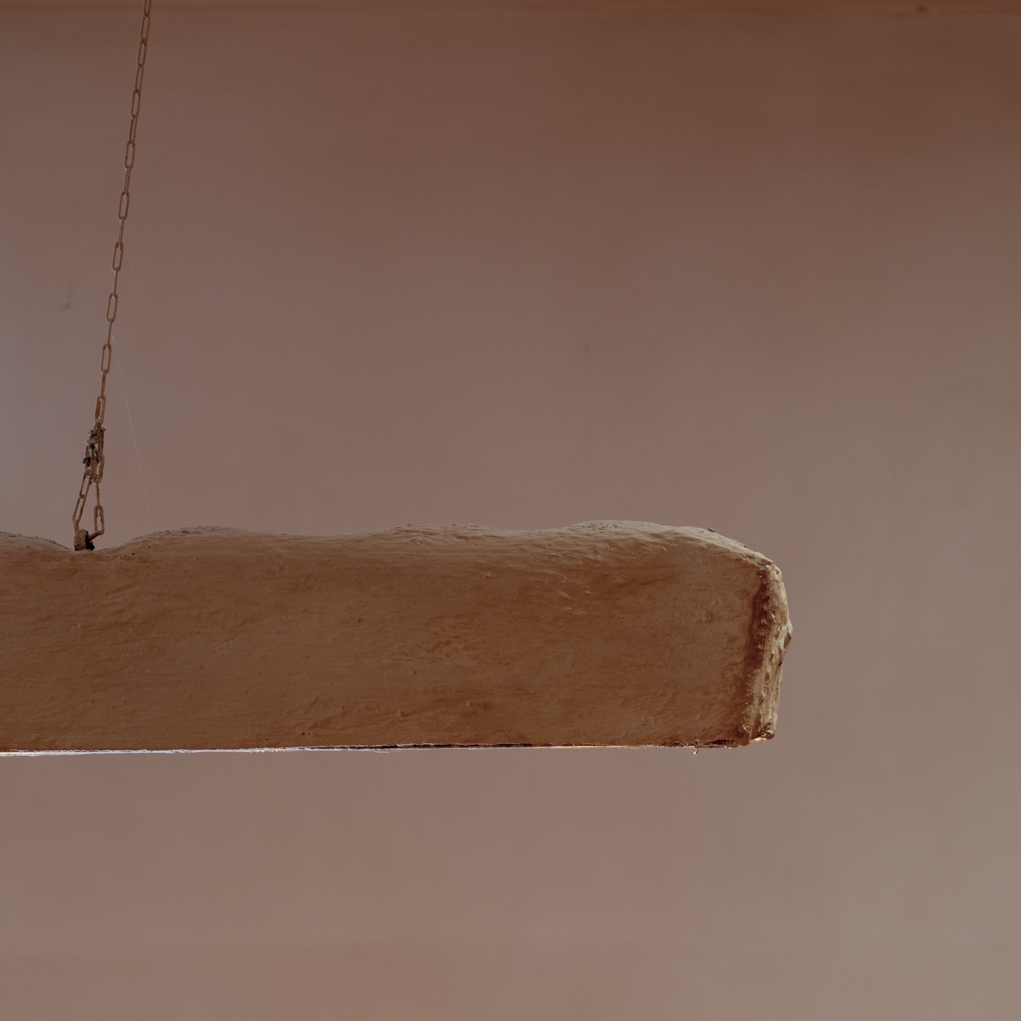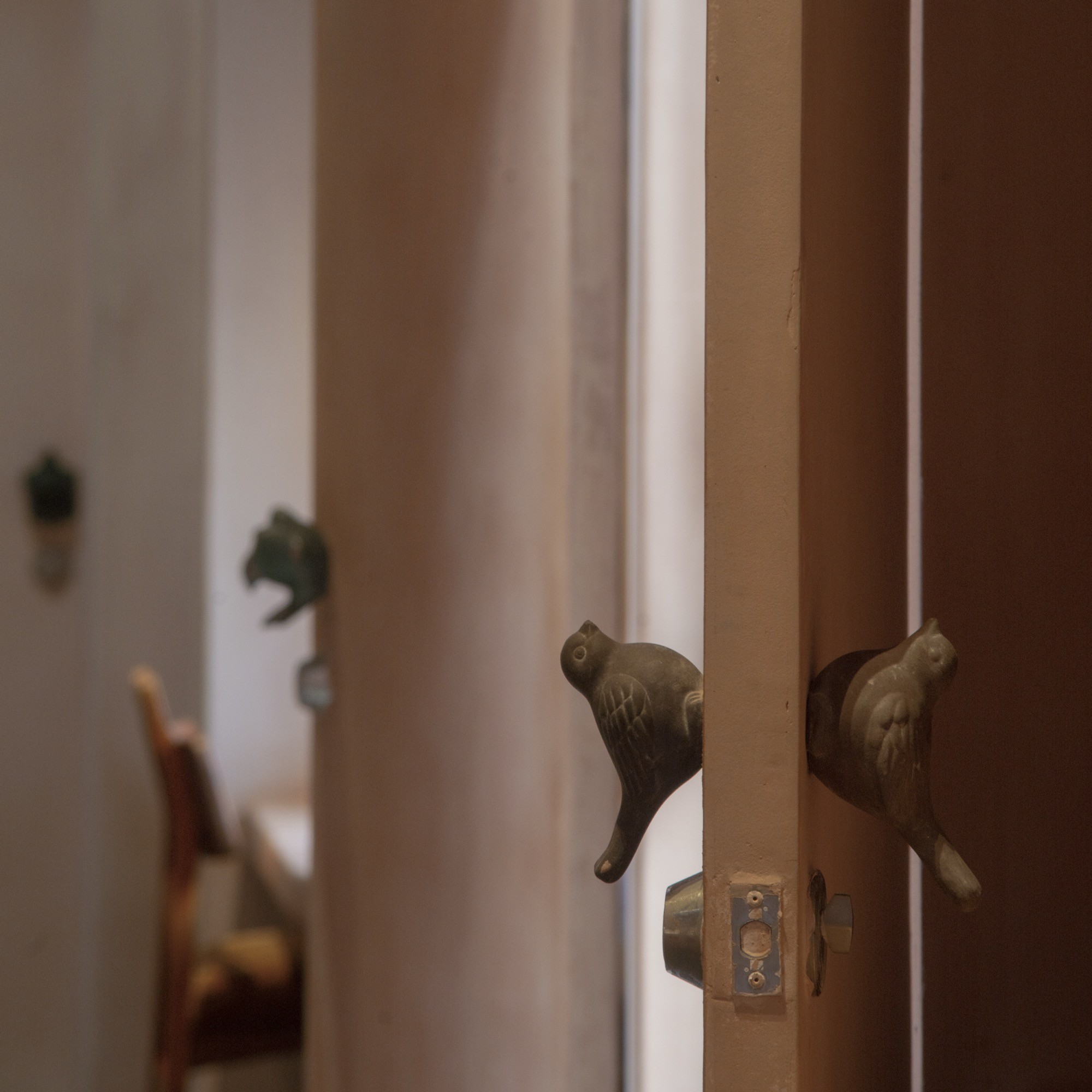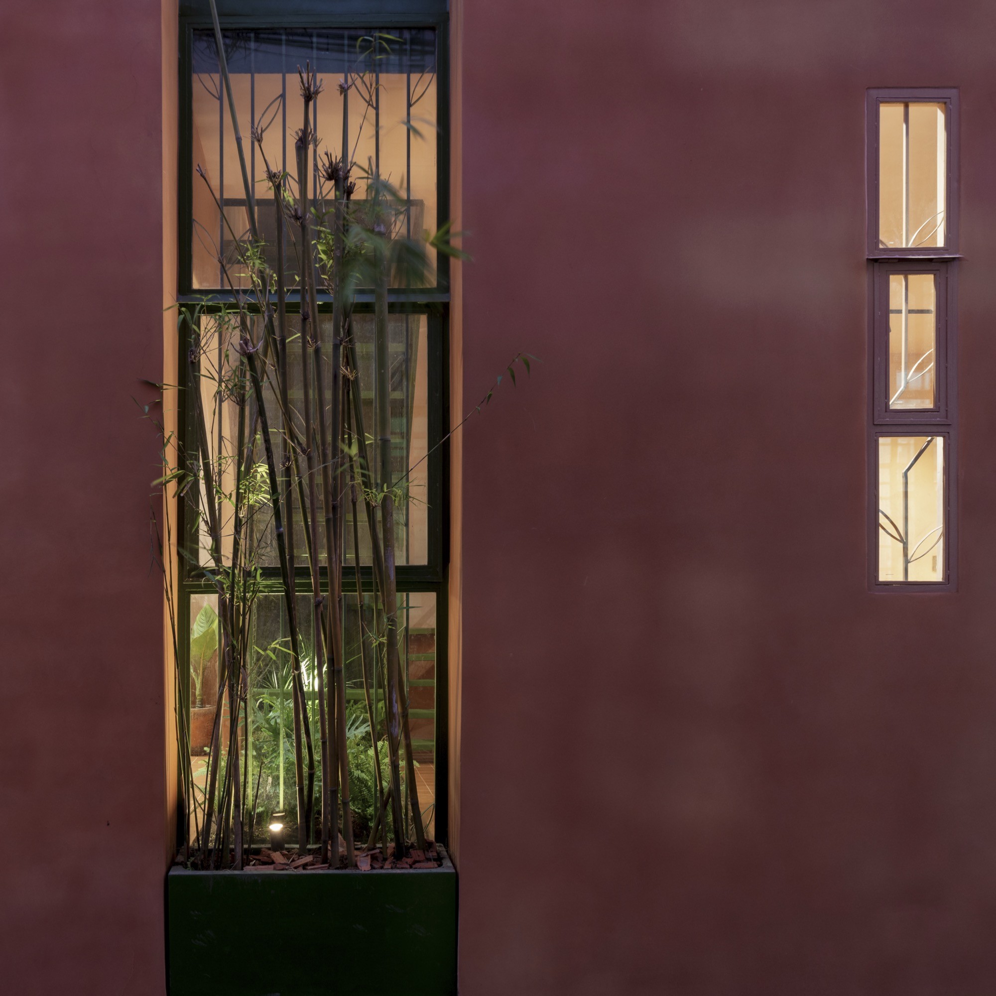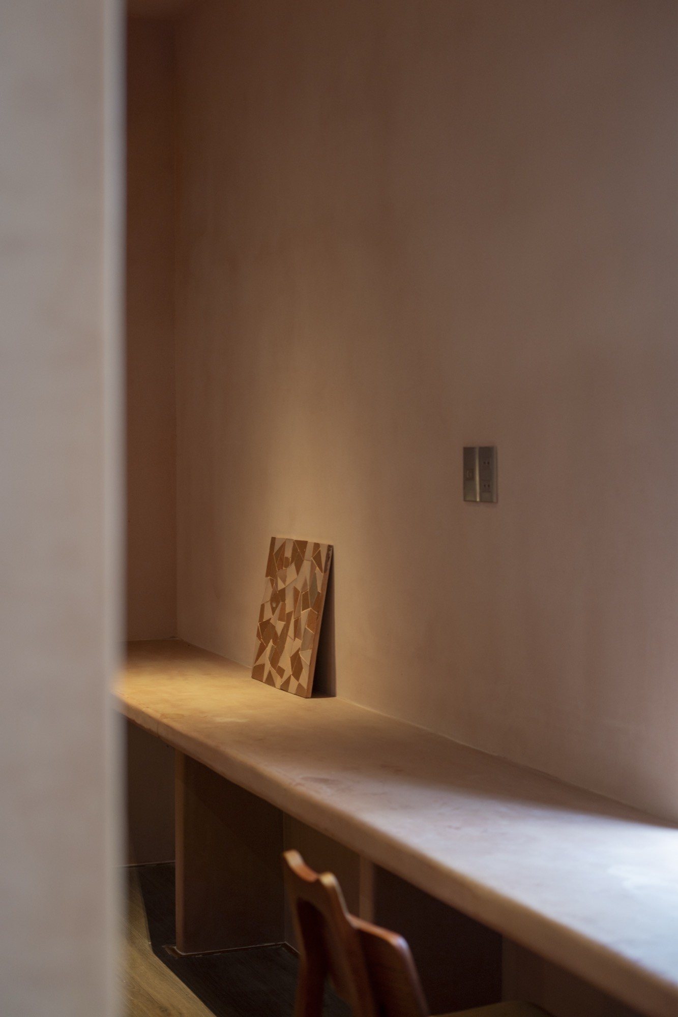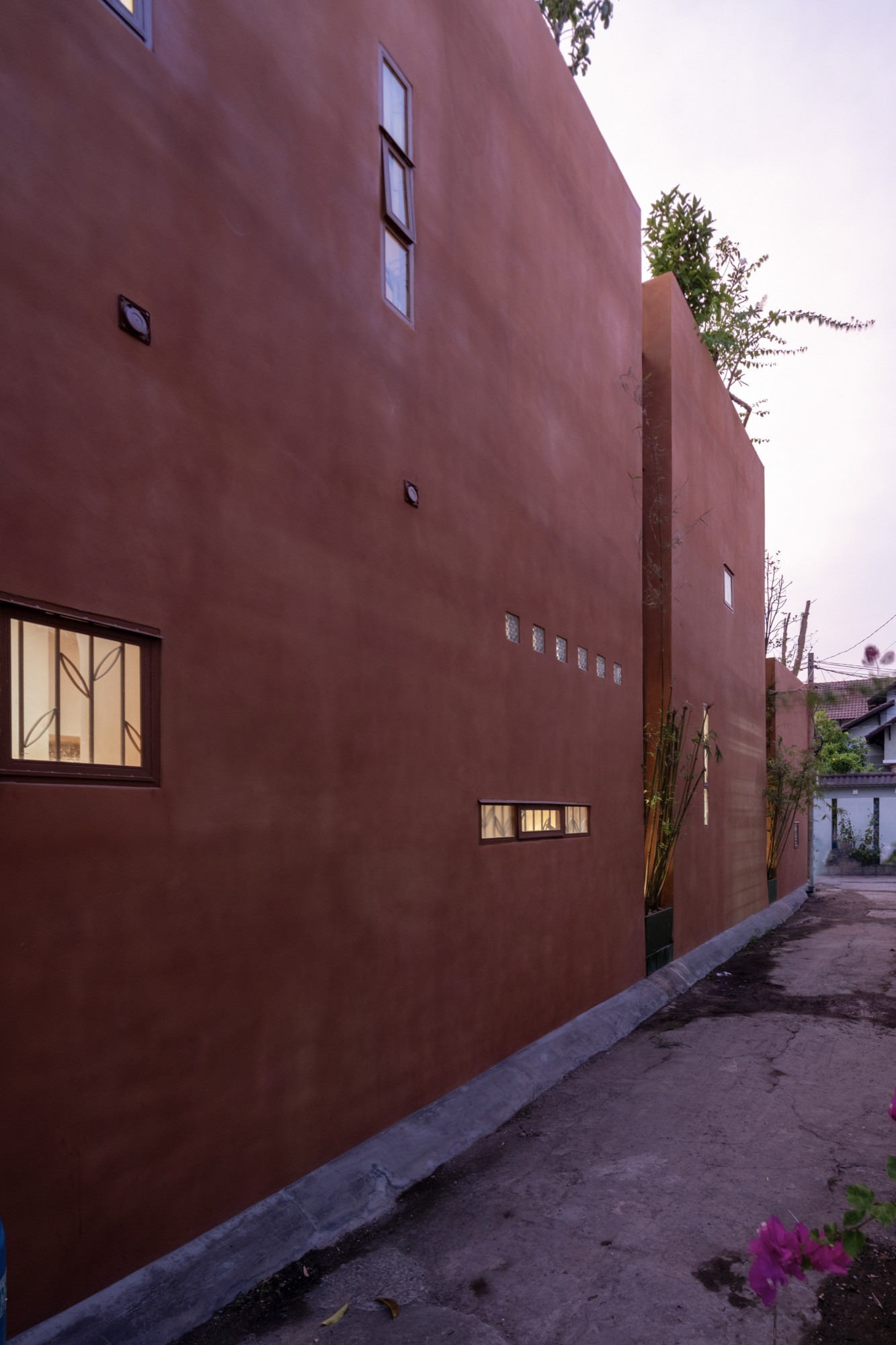 Bảng vật liệu thiên về sắc độ đất với gạch gốm, gỗ tái chế, sắt thô và hỗn hợp đất sét cải tiến để thích ứng khí hậu. Nội thất phần lớn do chính gia chủ chế tác, từ những chi tiết gợi hình ảnh đời sống nông thôn đến các cấu kiện tái sử dụng