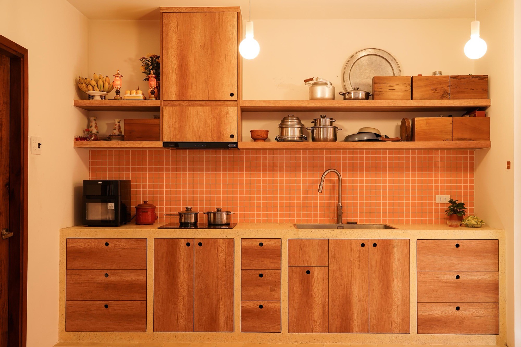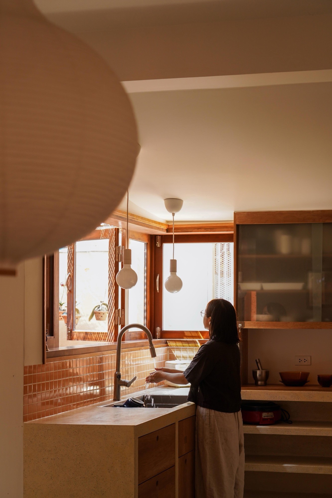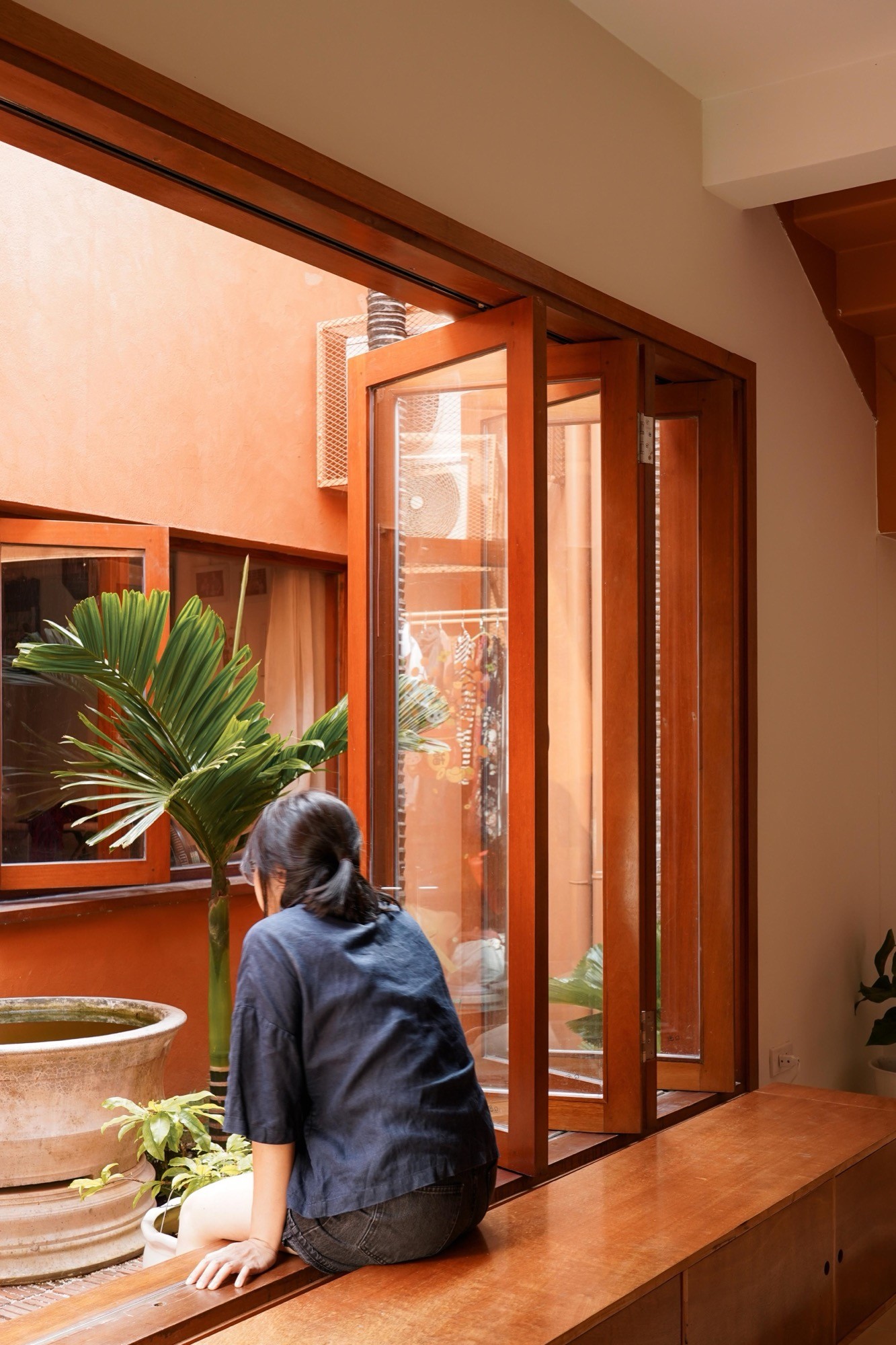 Ngôn ngữ công trình được xây dựng từ những vật liệu gần gũi: gạch, tre, gỗ, lớp trát màu đất nung. Không xử lý cầu kỳ, các bề mặt giữ lại tính nguyên bản, cho phép công trình thích nghi và biến đổi theo thời gian và khí hậu, như một phần tiếp diễn của bối cảnh đô thị xung quanh.