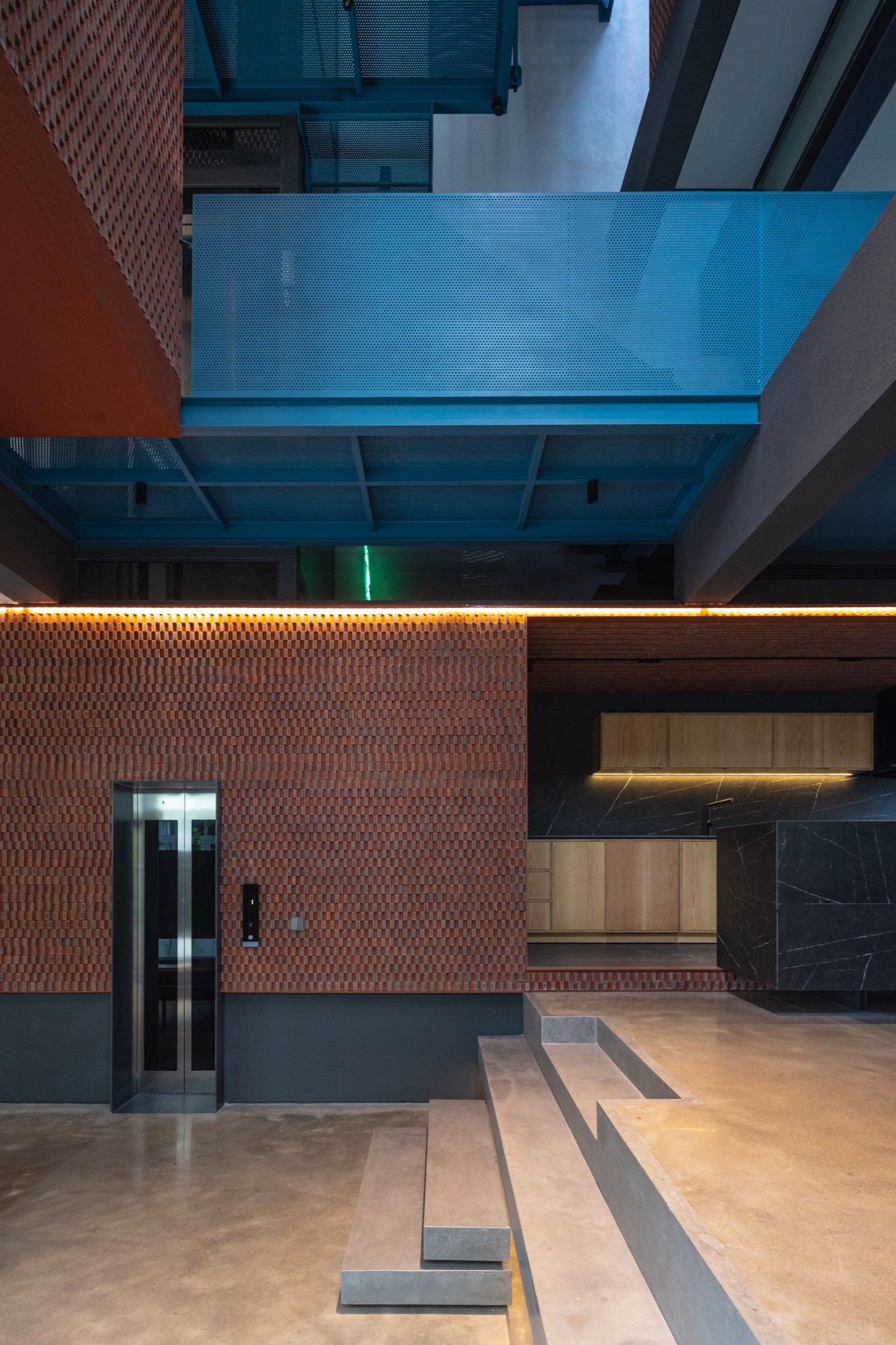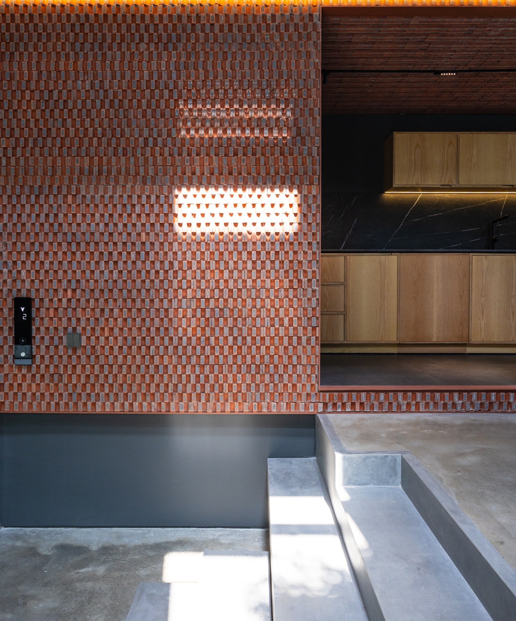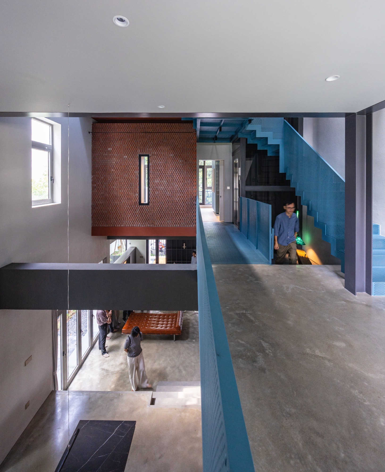 Sự hiện diện của gạch nung, thép, gỗ hay bê tông trần không nhằm phô diễn vật liệu, nhóm thiết kế mong muốn tạo ra một trạng thái cân bằng, giữa bên ngoài với đời sống nội tại.